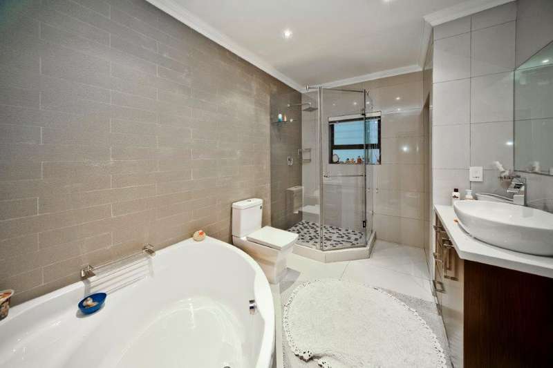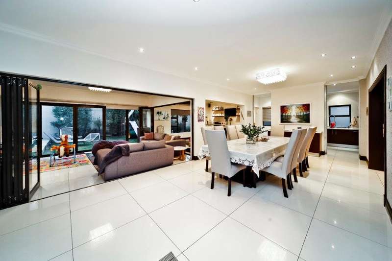 5 bed, 4 bath gorgeous spacious double storey cluster with entrance hall and 2 receptions. Semi open plan well sized kitchen with combined glass and gas hobs, 2 ovens, built in coffee maker and breakfast bar, plus separate scullery accommodating 3 appliances. Offset built in bar, beautiful covered patio with stacking doors and built in braai overlooking sparkling pool. Main en suite bedroom with attractive walk in dressing area. Generous cupboard space, aircon and underfloor heating throughout. Staff suite, double auto garage with storage space, alarm and beams. Situated within a road closure in an exclusive estate close to desirable private schools, major shopping centres, restaurants, Morningside Clinic and within a few minutes’ drive to the Sandton CBD. Served by a good road network including easy access to and from the M1. Available 1st December