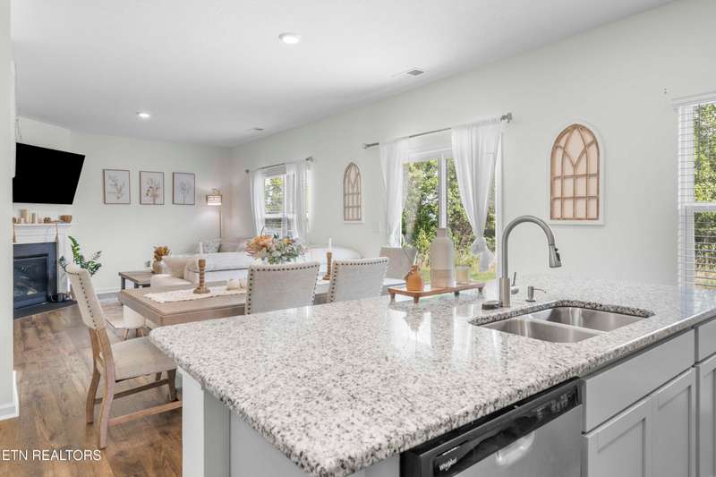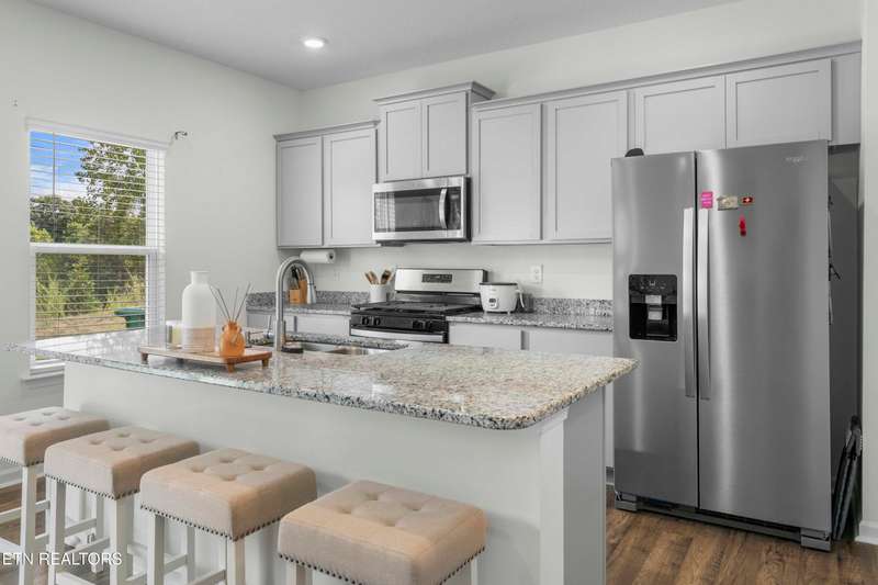 Welcome to your next home at 12318 Hatmaker Ln, Knoxville, TN! This warm and inviting two-story home is practically brand new—just one year old—and offers a thoughtful layout with space for everyone. On the main level, a cozy flex room just off the foyer is perfect for a home office or playroom, and a convenient half bath serves guests with ease. The open-concept living area seamlessly connects the living room and kitchen—ideal for gathering and entertaining. A gas fireplace adds warmth and charm, while natural light pours through the back windows and doors, highlighting the heart of the home: a stylish kitchen featuring a large island, stainless steel appliances, shaker-style cabinetry, solid surface countertops with a 4-inch backsplash, and a generous walk-in pantry. Upstairs, you'll find the massive primary suite—your own private retreat with plenty of room to relax. The ensuite bath offers a calming space to unwind, and the oversized walk-in closet provides ample storage with room to spare. Three additional bedrooms share a second full bathroom, and laundry hookups are conveniently located just steps from all the bedrooms. With 8-foot ceilings on the main level and a layout that's both open and comfortable, this nearly new home is the perfect place to settle in and make memories. The location is fantastic—just 10 minutes to Farragut and 21 minutes to downtown Knoxville and the University of Tennessee. Schedule your private tour today!