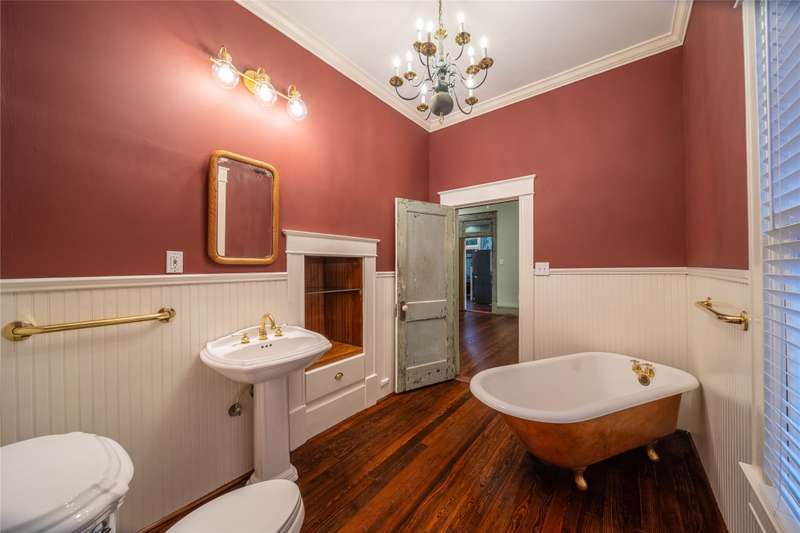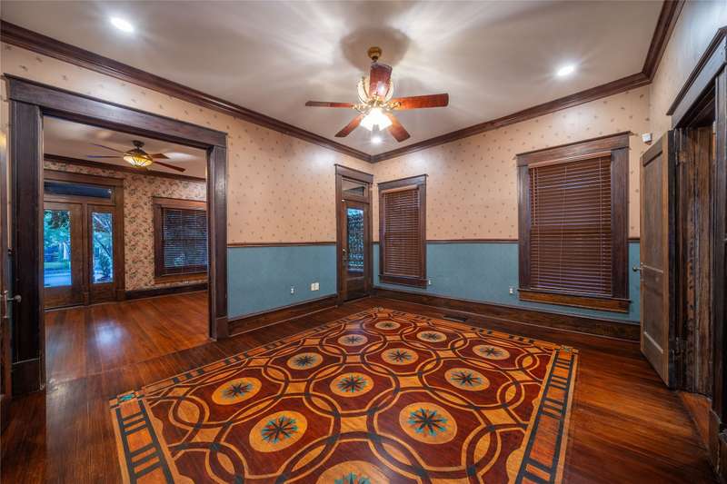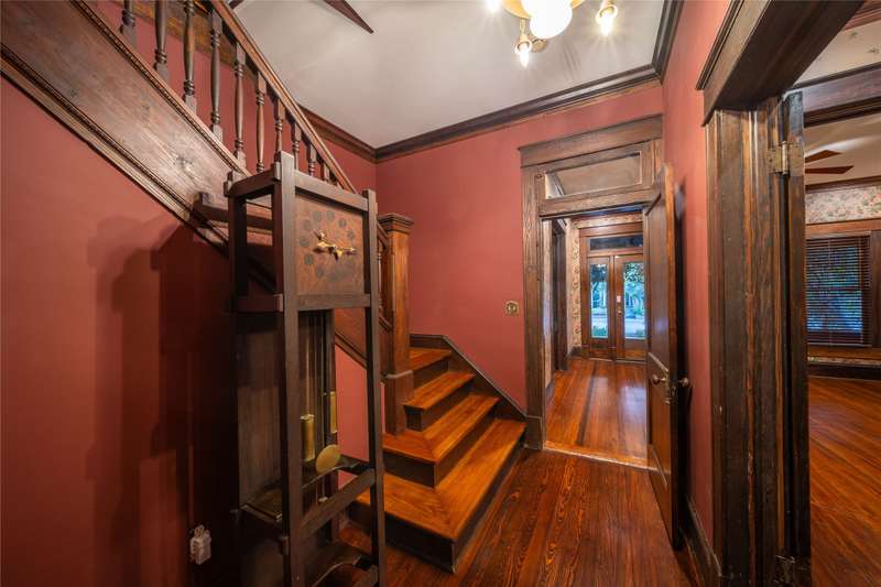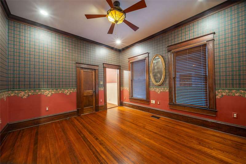 A history lesson in preservation worth its weight in gold! Built in 1912, this remarkable multi-use home has been lovingly updated and meticulously maintained by one of the areas most respected historic district Realtors and its now ready for its next curator. Whether youre seeking a charming primary residence or an inspiring space for your business, this property offers exceptional flexibility and character thats a rare find.Step inside and discover original architectural details thoughtfully preserved and beautifully restored for modern living. Grand, fully functioning pocket doors gracefully separate the living room, dining room, and office, while hand-painted floors in the dining and breakfast rooms add distinctive character. Beneath a discreet trap door in the breakfast room lies a cellar, ideal for storage, a wine collection, or simply as a one-of-a-kind conversation piece. Thoughtful modernization includes wiring for high-speed internet with RJ-45 connectivity and speaker wiring in select rooms. Recent updates feature restored and refinished wood floors throughout, fresh interior and exterior paint, new gutters, and other enhancements best appreciated in person.As a residence, enjoy the comfort of dual primary suites: one conveniently located on the first floor and an expansive upstairs suite spanning over 450 square feet with both suites thoughtfully positioned next to washer and dryer connections on each level for ultimate convenience.If utilized as an office, the home offers seven spacious rooms that can easily function as private offices, along with gated off-street parking in the rear.This home is a rare opportunity to own a piece of history thats as functional as it is beautiful!