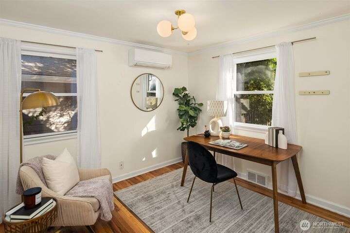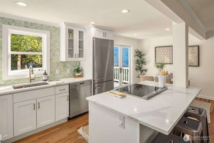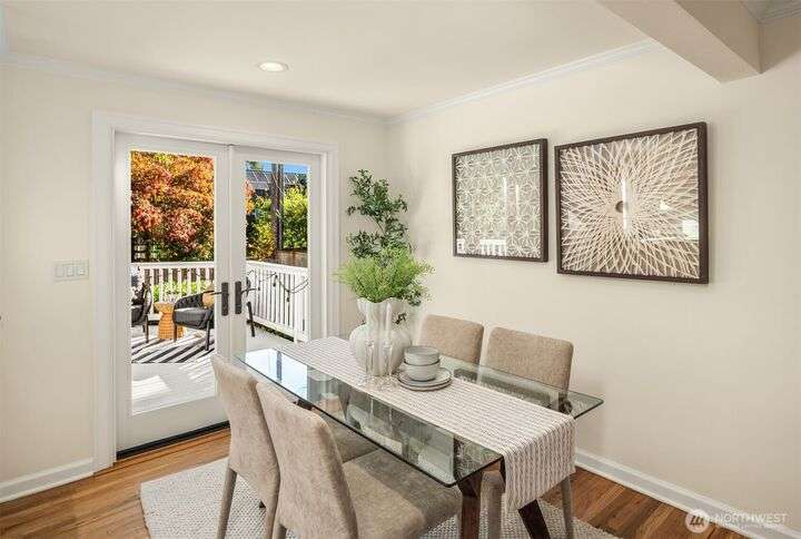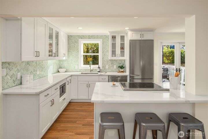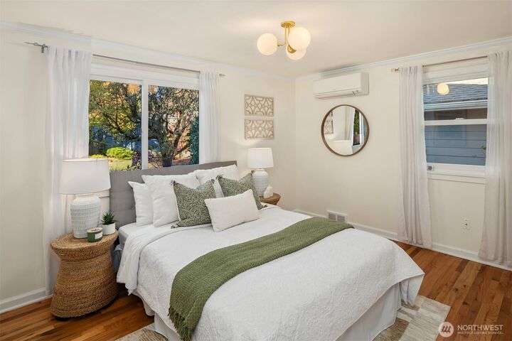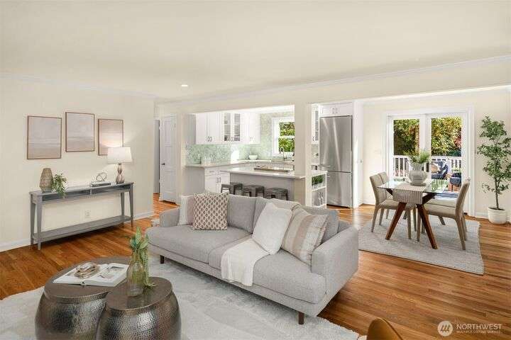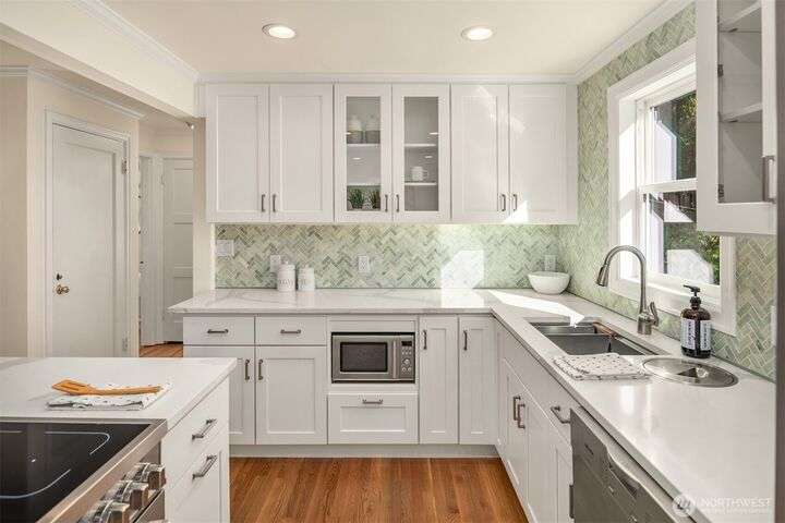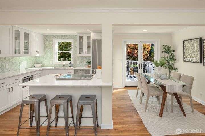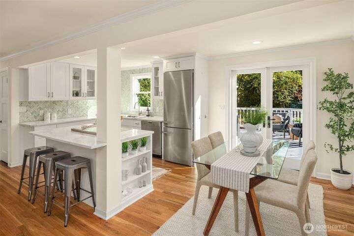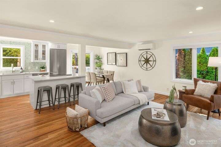 Nestled on a quiet, tree-lined street where cherry blossoms blanket the sidewalks each spring, this classic Wedgwood gem offers timeless appeal and modern updates. Step inside and you’re greeted by gleaming, refinished hardwood floors and abundant natural light. The open-concept living area is an entertainers dream. The kitchen has been fully remodeled and features Miele appliances, sleek cabinetry, and thoughtful finishes. French doors open from the dining room onto your back deck and spacious fully-fenced backyard, perfect for gatherings. Additional upgrades include A/C and refreshed bathrooms for added comfort and style. Located close to top-rated schools, charming shops, local eateries, and convenient transit this home truly has it all!