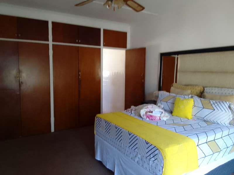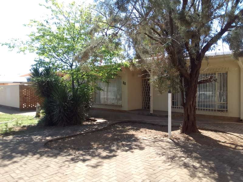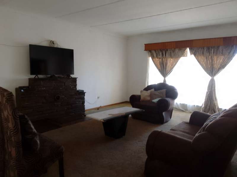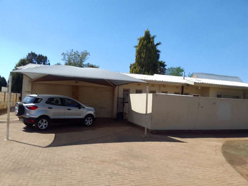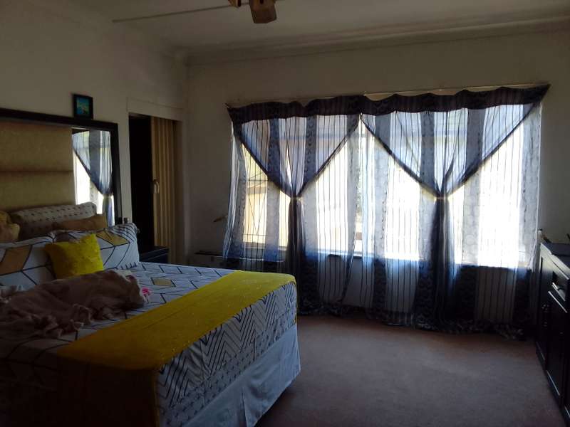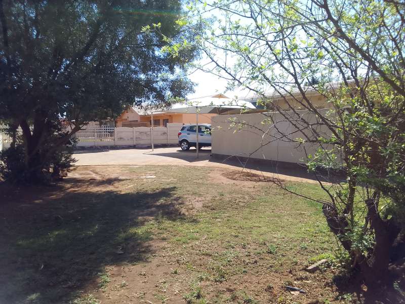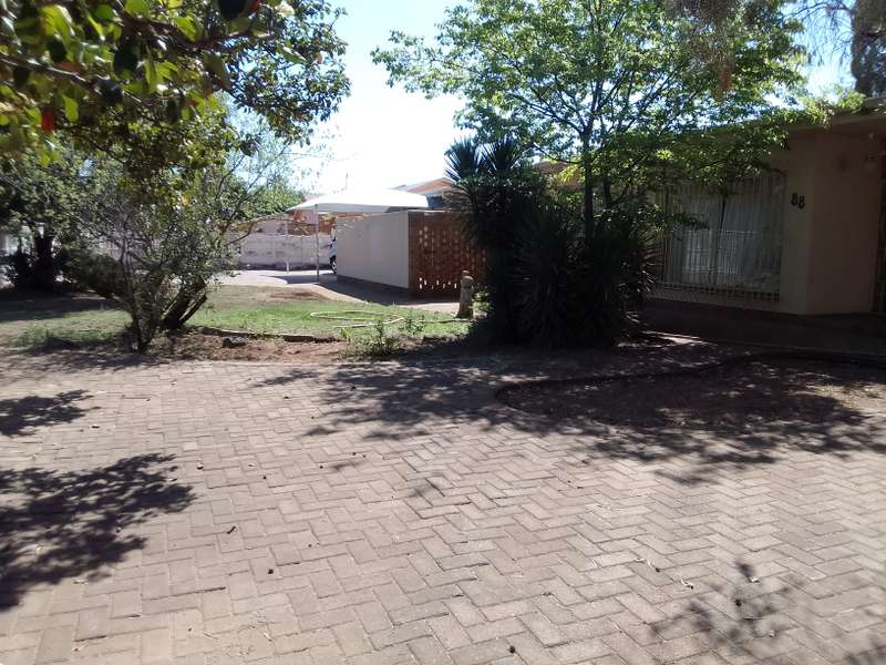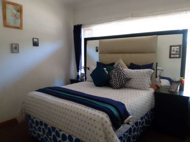 Situated close to local primary school. Home consists of 3 living areas, study, 3 bedrooms, 2 bathrooms and large kitchen with separate scullery/laundry. At the front is a double garage with double shade net carport. Attached to the house (with interconnecting door) is a one-bedroom flat. Living room, separate kitchen, bedroom, and bathroom (bath with overhead shower). Patio area overlooks the back garden. Vehicle access at the side of the house gives direct access to the flat. Property is enclosed on all sides, pre-cast on three sides with steel fencing at the front.