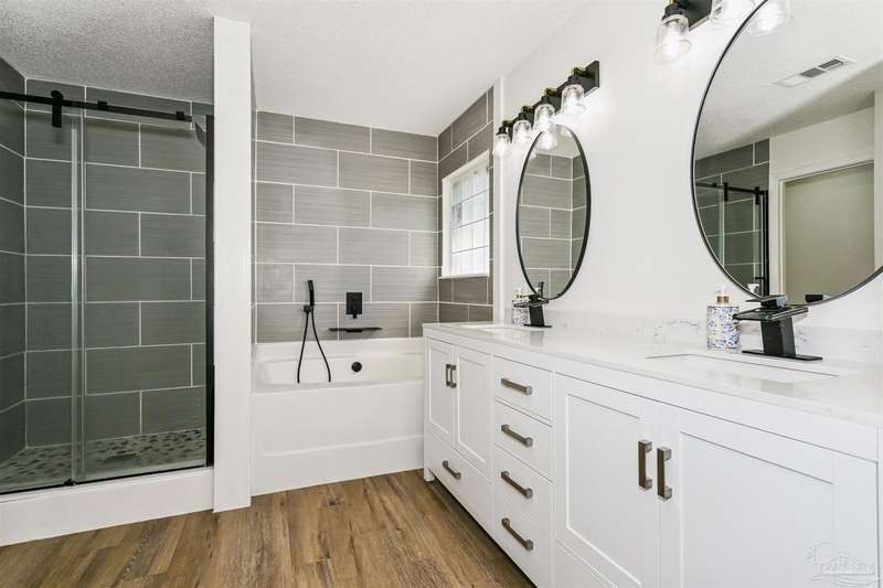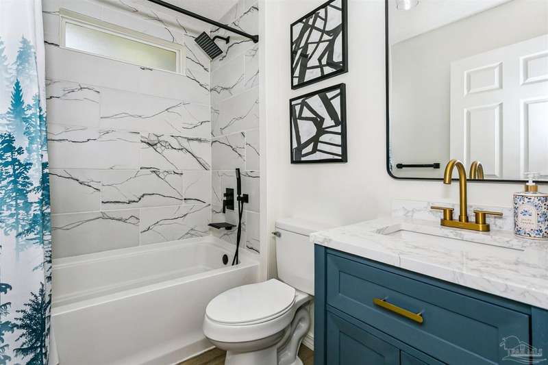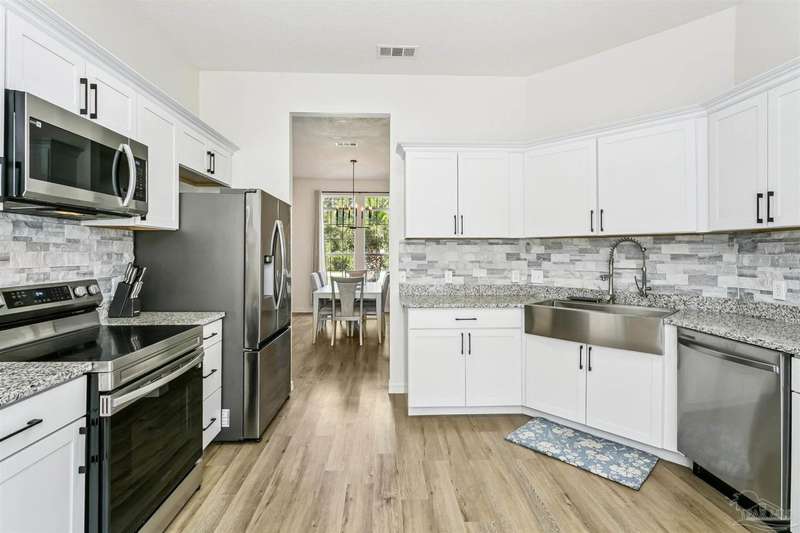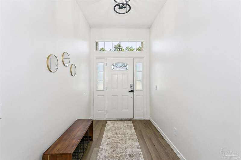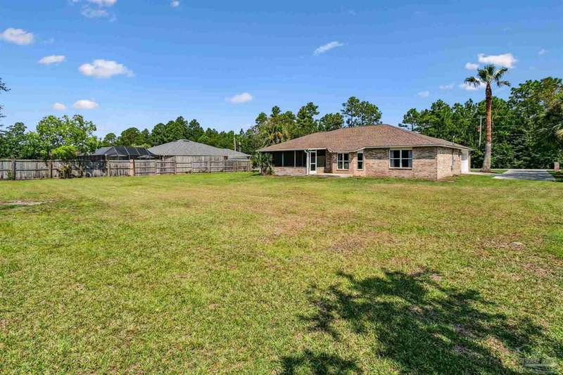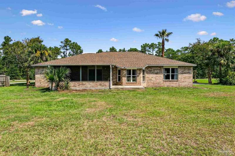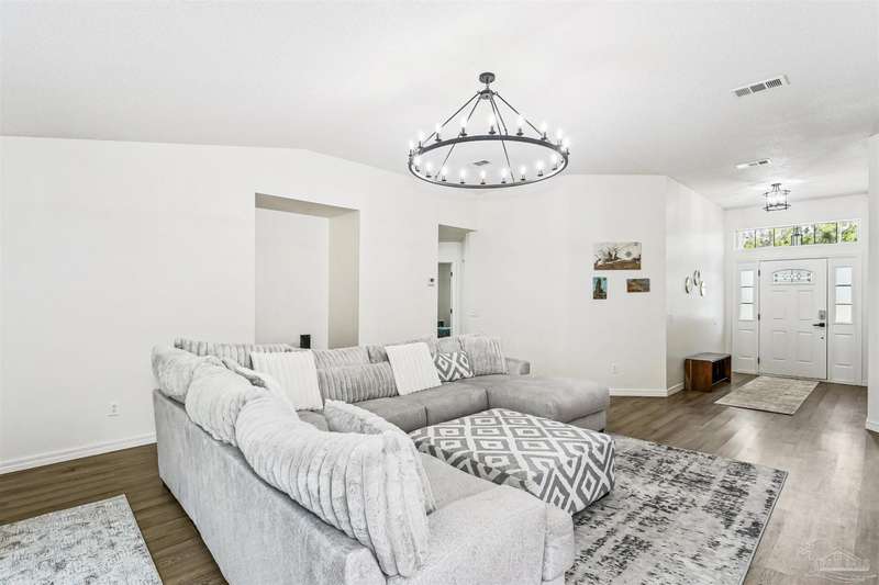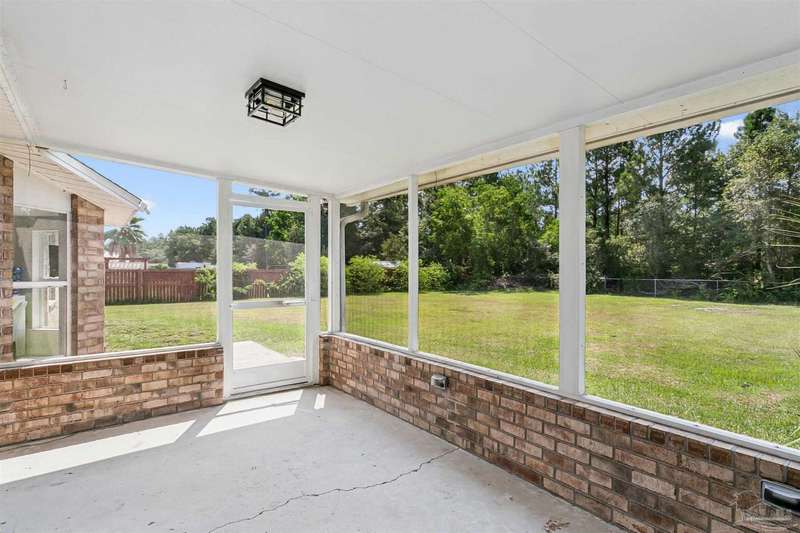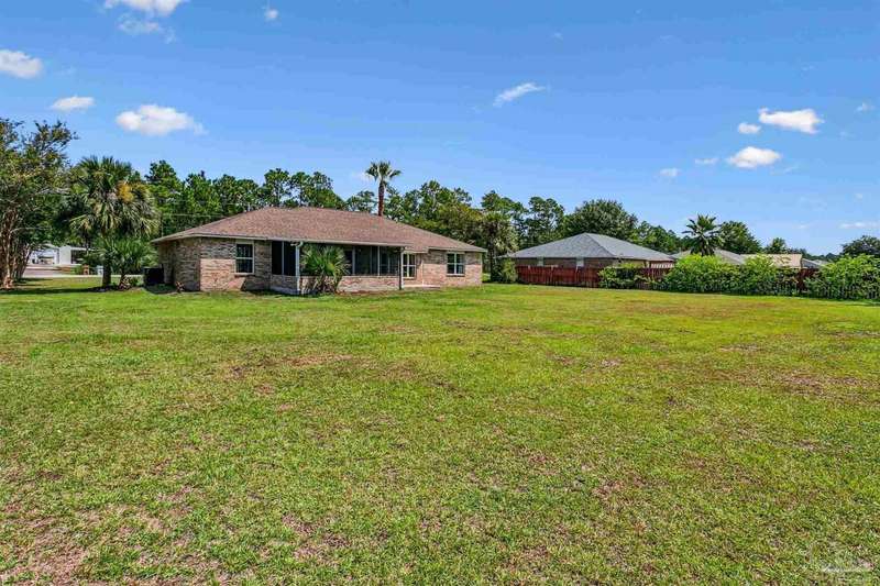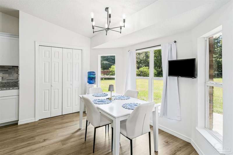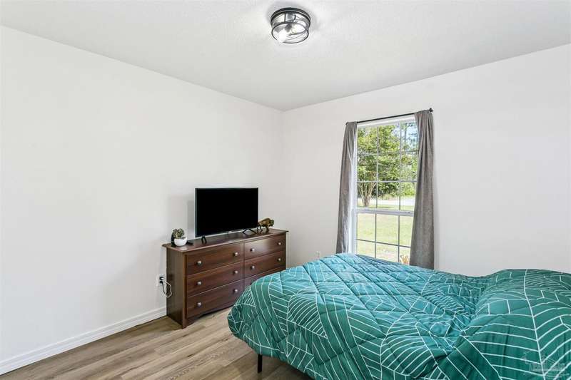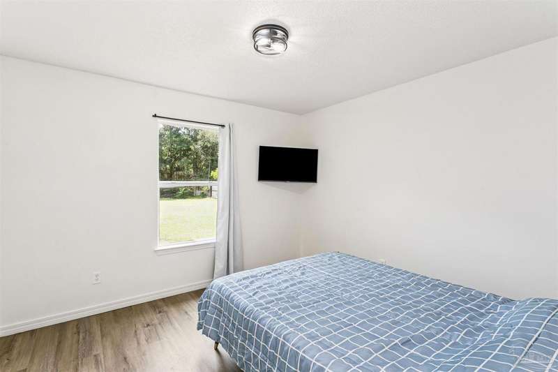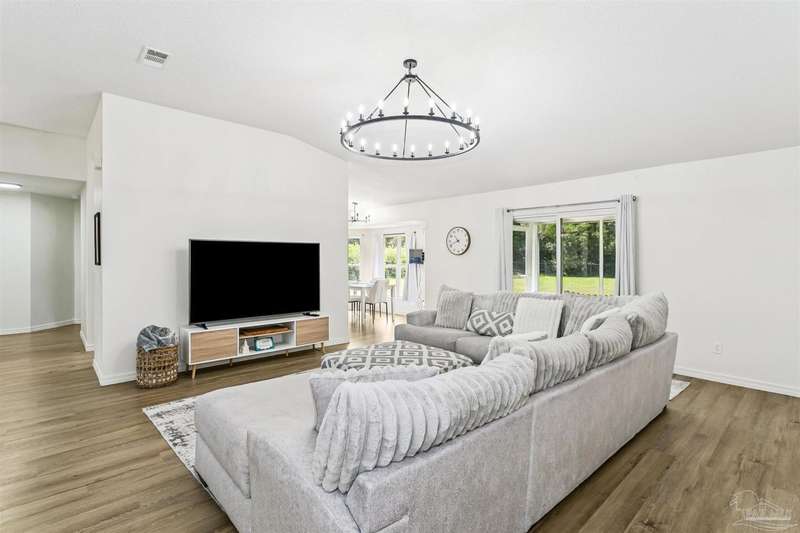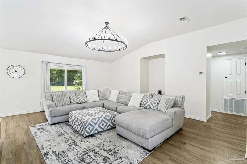 Welcome to this spacious and move-in ready 4-bedroom, 2-bathroom, split floorplan home offering 2,129 square feet of thoughtfully designed living space. Nestled on a generous 0.55-acre lot, this property combines comfort, style, and convenience. Step inside to find luxury vinyl plank (LVP) flooring throughout and an updated kitchen featuring modern finishes, sleek countertops, and stainless steel appliances. Both bathrooms have also been tastefully renovated, offering a fresh, contemporary feel. The home's open layout provides flexible living and dining options, while large windows fill the space with natural light. Outside, enjoy the expansive yard or relax in the screened porch. Roof and water heater-2024, HVAC-2016. Located just minutes from the interstate, this home ensures an easy commute to nearby beaches and military bases. Don't miss this opportunity to own a well-updated home on a spacious lot in a prime location!