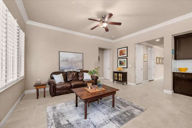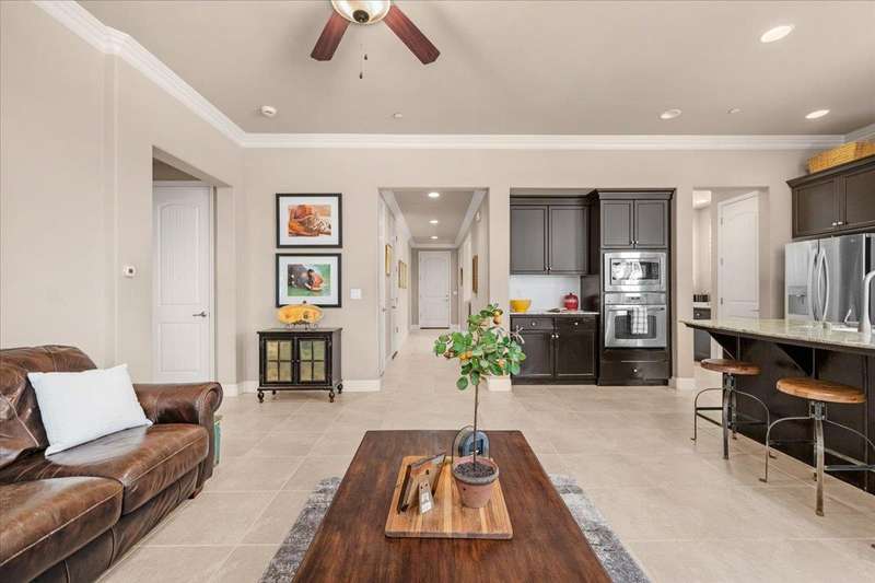 Forkner Crest, a 55+ community! This single story home sits on a desirable corner lot and features 2 bedrooms plus a versatile flex room that can serve as a formal dining space, home office, or cozy sitting area. The kitchen is equipped with granite counters, a center island, breakfast bar, abundant cabinetry, a pantry and a handy catering nook.The primary suite includes dual sinks, a step-in shower, a separate water closet room and a walk-in closet.Additional storage includes: laundry room cabinets, two walk-in closets off the living area, and built-in garage shelving. Outdoors, enjoy the extended covered patio and low-maintenance backyard. The HOA maintains the front yard and provides gated security.See this move-in ready home; book your private tour today!