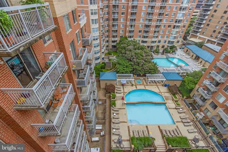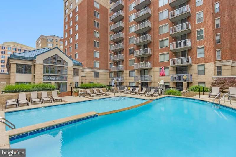 Gorgeous and spacious 2-bedroom + den, 2-bath condo in the heart of Arlington! This light-filled corner unit offers stunning views of Arlington from the living room and overlooks the serene courtyard and pool from the primary bedroom. The open kitchen features a breakfast bar and flows into the living area with beautiful hardwood floors and a cozy fireplace. The primary suite includes a generous walk-in closet and en-suite bath. While the unit could benefit from some updating, it offers incredible potential. Includes assigned garage parking (#31) and an extra storage unit. Pet-friendly, secured building with excellent amenities-pool, grilling area, fitness center, club room, and on-site management. Unbeatable location just blocks to Ballston and Virginia Square Metro stations, Ballston Quarter, shops, restaurants, parks, and everything Arlington has to offer. Property is being sold strictly AS IS