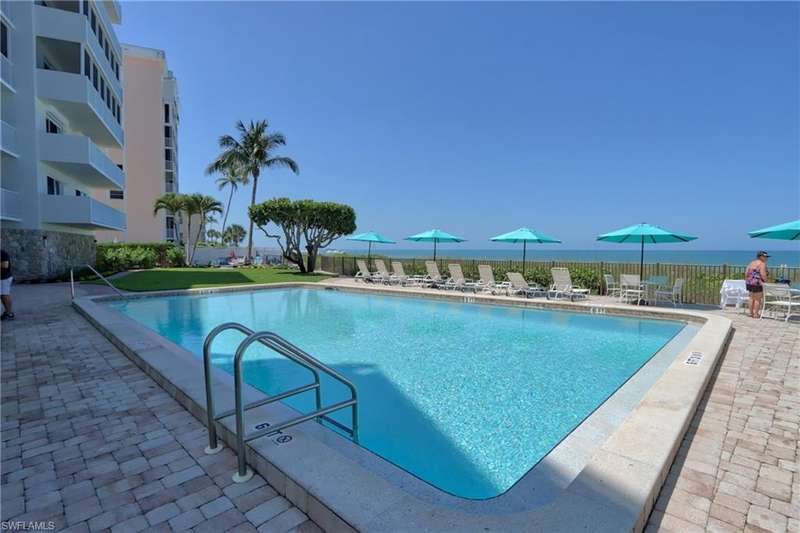 OPEN FOR 2025-2026 Season! Just REDUCED!! Dreaming of spending your winter in a beachfront property? Gulf Towers is a boutique condo building with only 36 residences, allowing you to enjoy miles of white sandy beach. This building has just completed a major exterior and interior renovation as of 2022. This classic building has received its’ engineering inspection and is structurally sound and boasts newly updated finishes ( Interior and Exterior), and upscale common area furnishings. Gulf Towers offers elevators, private beachside pool, and unobstructed views of the Gulf of Mexico. This 3rd floor residence has 1300 sq. ft. of living space. The private open lanai/balcony that can be accessed through the living room , as well as the primary bedroom, and overlooks the tropical gardens. Walking distance to Edgewater Beach hotel and Naples Golf and Beach Club, to enjoy a lovely sunset with dinner. Just a bike ride sway from 5th Ave and 3rd Street in downtown Naples! Beachfront Pool and Tropical garden area for grilling. Looking for a relaxing lifestyle on the beach with a sea of restaurants, shopping and live music minutes away!!! You just found it.