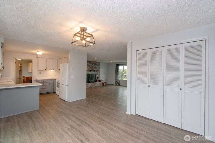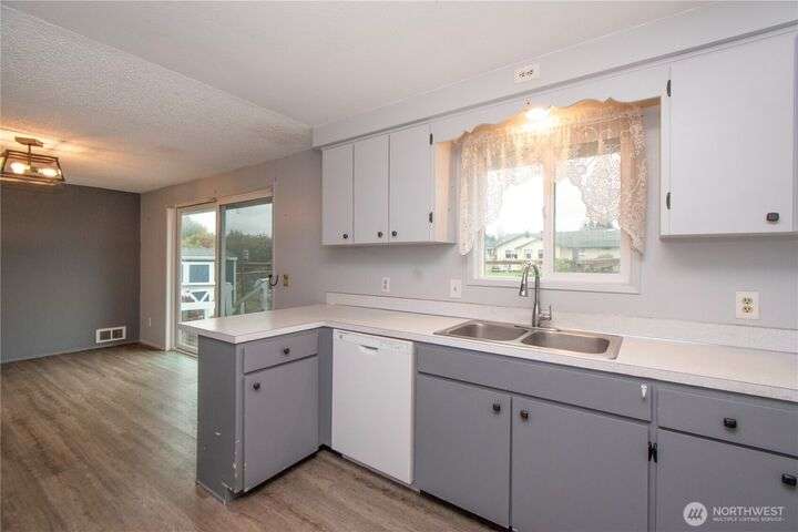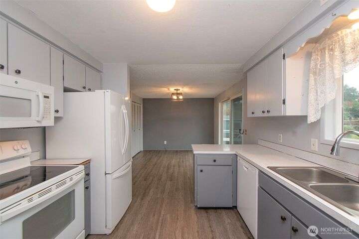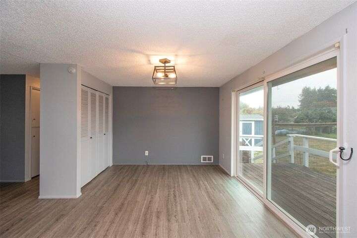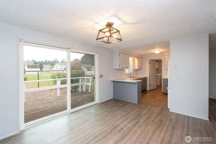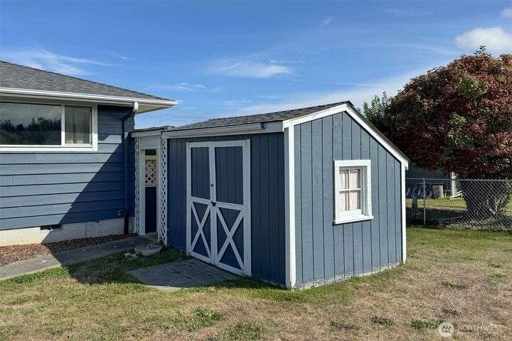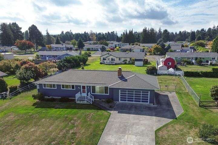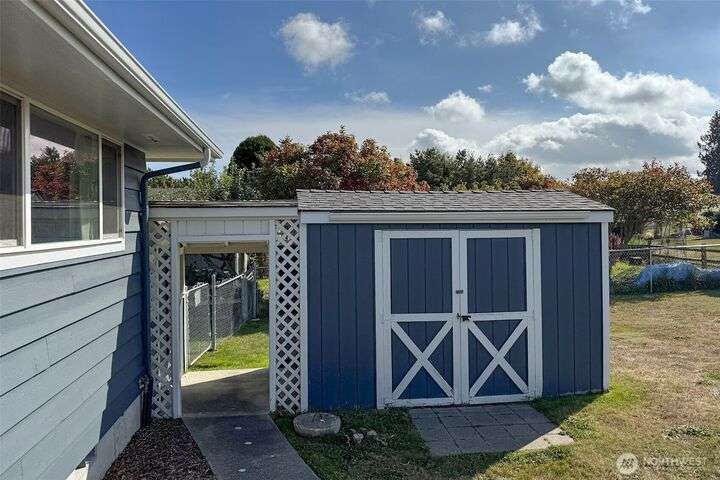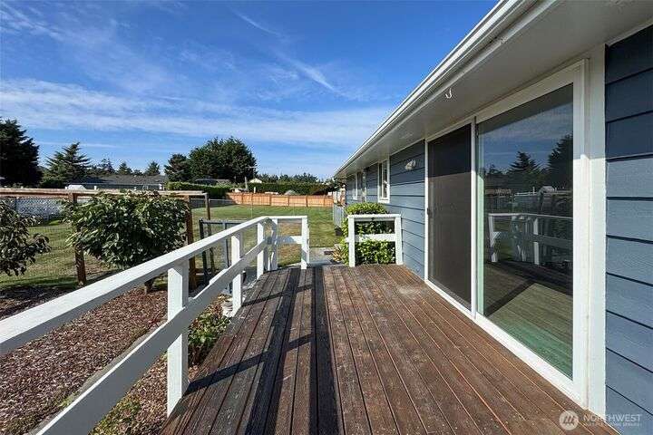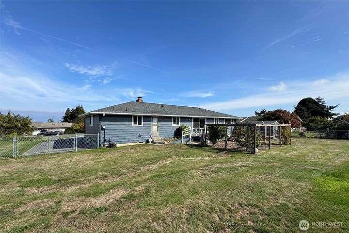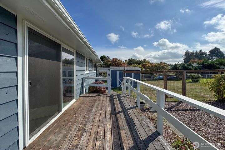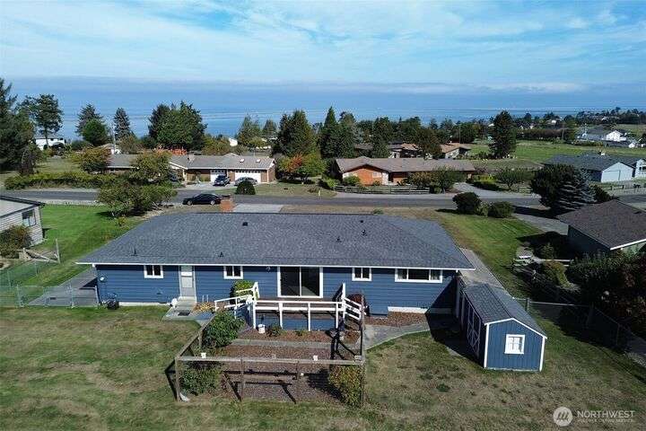 One level home, with a newly painted exterior, & new flooring throughout. Enjoy views of the Strait, the Dungeness Lighthouse, Cline Spit, and the Olympic Mountains. This 3 bedroom, 2 bath, home in Mains Farm is a rare find. Large living area with cozy wood stove, light and bright with big windows, tons of storage space, and dual entry via the garage, one ramp and one with steps. A fully fenced back yard with wood deck and deer-fenced garden area to soak in the southern exposure. Large exterior wood shed and an additional stand alone storage shed. Irrigation water for outside watering. Exceptional walking neighborhood, with access to the community waterfront lot.