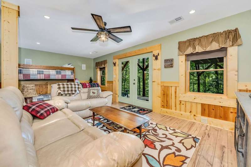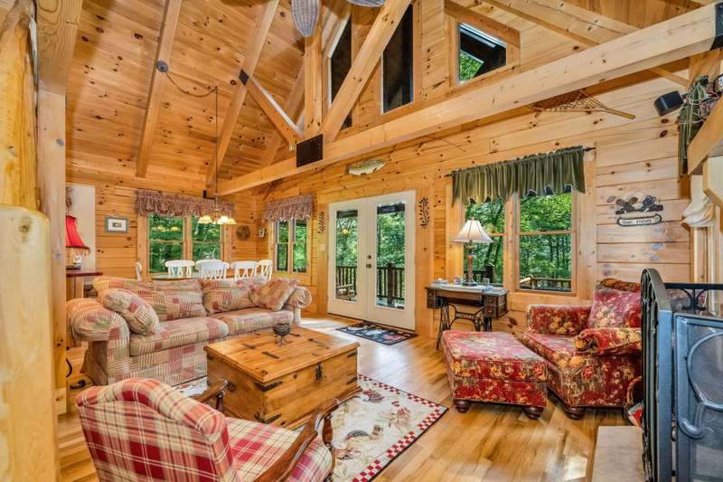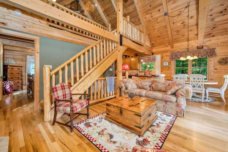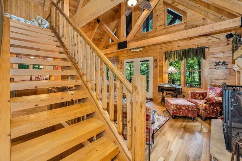 Life's Better on the River - Especially Here! Tucked along the Historic New River, this custom-built, 3-Bedroom, 2-Bathroom, freshly stained log cabin blends mountain charm with all the fun of riverfront living. Located in a peaceful 1.17-acre setting, just minutes from the Blue Ridge Parkway, quaint Glendale Springs, and only 20 minutes to downtown West Jefferson, you'll have the best of both worlds—peaceful seclusion and easy access to shops, restaurants, and more. Crafted by Snow Construction using Amish Hochstetler kiln-dried Eastern White Pine logs, this beauty is built to impress. Step inside to an open, airy main level with maple cabinetry, quartz counters, a spacious pantry, and a great room anchored by a wood-burning, stone fireplace. Walls of glass pull the outdoors in, while the dining area invites everything from cozy dinners to lively gatherings—spill out onto the big, covered porch for mountain air and river views. The main floor primary suite keeps things convenient, and upstairs you'll find a bright, open loft for extra living space. The lower level offers a second living/family room, a bonus room, a full bath, and even a home theater system for movie nights. Outside? It's a river lover's dream. A winding walking trail (or a gator ride) takes you straight to the water, where huge stone steps make slipping into your kayak, tube, or fishing spot a breeze. There's a flat river area perfect for campfires, a creek running along the property, and storage space for all your toys. Recent updates—new well pump, water heater, radon mitigation, and 2022 HVAC. Smart home upgrades include Lutron lighting and an indoor/outdoor speaker system. Comes mostly furnished, so you can start living your best river life immediately. Whether it's tubing at sunset, grilling by the firepit, or cozying up by the fireplace after a day on the water, this cabin is more than a home—it's a lifestyle. Call for an appointment to see our listing G145 today!