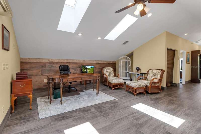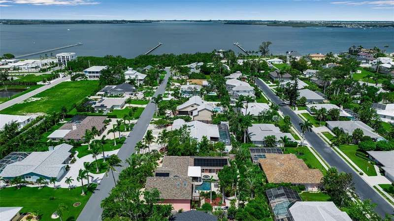 Just 800 feet from Palma Sola Bay and minutes from the white sands of Anna Maria Island, this custom 4-bedroom, 5-bathroom home offers exceptional flexibility, privacy, and indoor-outdoor living. Located on a quiet dead-end street, this property is ideal for multi-generational living, hosting guests, or simply enjoying your own private retreat near the coast.Inside, the split open-concept layout features two spacious primary suites, each with walk-in closets, tile flooring throughout, recessed can lighting, and a thoughtfully designed flow perfect for everyday living or entertaining. The paid-in-full solar system helps keep electric bills impressively low year-round.Outdoor spaces are equally impressive: relax in the screened front lanai or entertain under the covered back patio, overlooking the heated pool and spa. Both the attached and detached garages include electronic screen doors, allowing breezes while keeping bugs out.The detached 30x40 garage is a true standout-featuring 2+ car capacity, a concrete-encased 14' x 9' secure vault ideal for valuables or collectibles, a full bath downstairs, and a guest-ready upstairs with two bedrooms, another full bath, skylights, and a central living area. There's also plumbing and electrical in place to easily finish a kitchenette, making this space perfect for guests, adult children, or a potential mother-in-law suite.The exterior is as beautiful as it is unique, with paver driveways, winding garden pathways, and mature landscaping that includes a bamboo garden and cactus garden for a truly Florida-inspired setting.Located just a short bike ride to Potosueno Park and the Palma Sola Boat Basin, this one-of-a-kind home offers space, style, and location-just 4 miles from the beach.