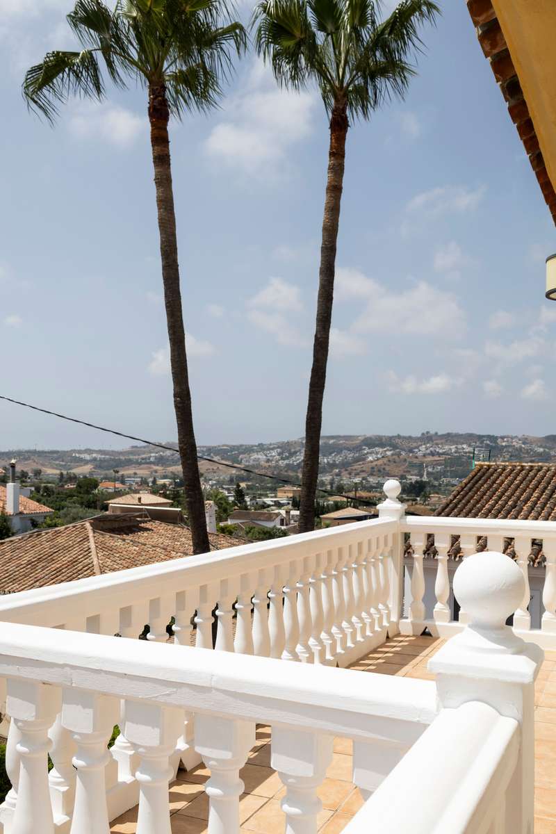 Welcome to this stunning villa located in the tranquil area of Mijas la Sierrezuela. This spacious and luxurious villa 3 Bedrooms in the first floor and 2 more bedrooms (en- Suite) in the lower ground floor, The perfect retreat for those seeking relaxation and privacy. As you enter the villa, you will be greeted by a beautiful private pool, inviting you for a refreshing swim or to simply soak up the sun on the comfortable loungers by the poolside. The pool area is surrounded by lush greenery, creating a serene and peaceful atmosphere. The villa boasts 5 spacious and elegantly decorated rooms, all the rooms in the first floor has there own balcony providing ample space for you and your guests to unwind and enjoy a comfortable stay. Each room is tastefully furnished, ensuring a restful sleep and a pleasant ambiance. In the lower ground floor we will see a big storage area, 2 parking spaces and 2 lovely Bedrooms very convenient for your guest The highlight of this villa is its ex