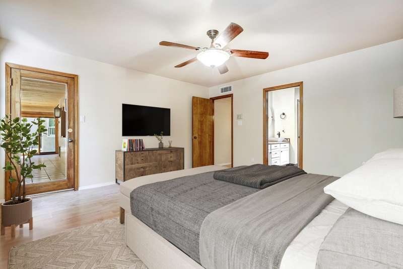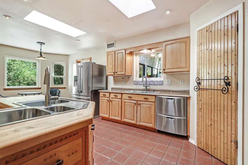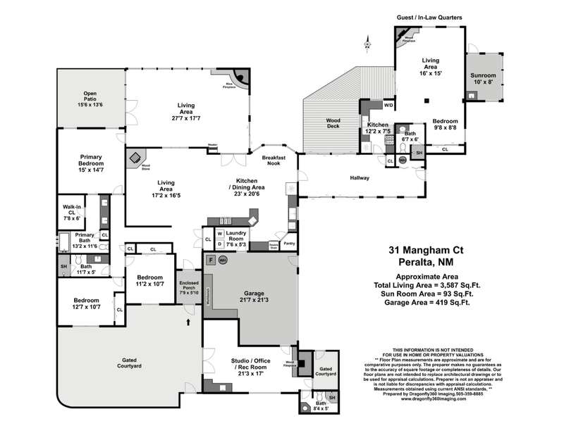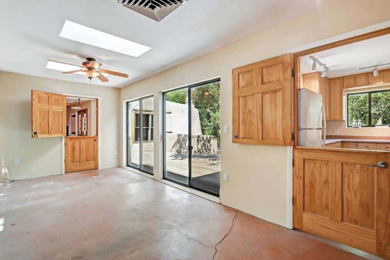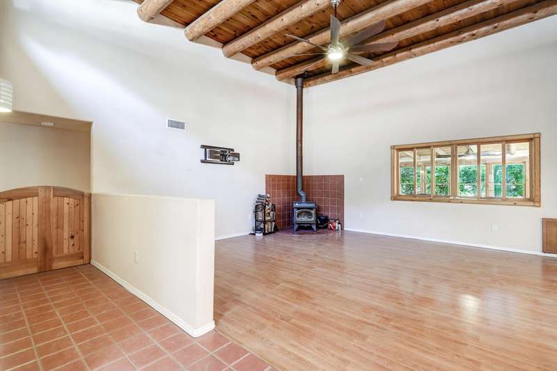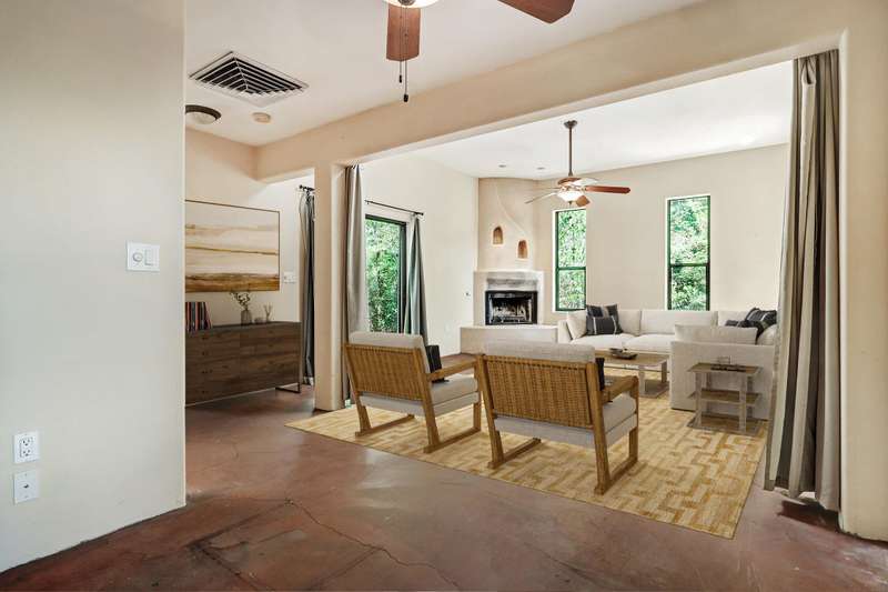 Experience timeless Southwestern Charm on a full acre in Peralta! This spacious home offers 4 bed, 4 bath plus an office (could be a 5th bedroom), 4 cozy fireplaces, 2 spacious living rooms one w/ beautiful raised beamed ceilings. Well appointed kitchen with custom cabinetry, 6 burning gas stove w/ griddle, double ovens, and 2 sinks! The attached casita, connected by a breezeway offers added flexibility w its own entrance, fireplace washer, dryer, kitchenette, and private bath! Updates include 24 Panel Solar system (2018(), Andersen windows(2018), Stucco (2020), Roof (2020), New HVAC in main house (2018). Primary bath has brand new tile and paint! Recently connected to city sewer (2024). Verdant spacious yard with a variety of fruit trees.