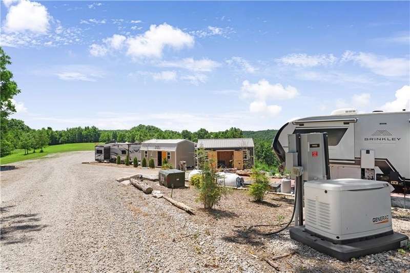 A lucrative investment property or expansive private homestead, this 48 acre, income- producing estate has limitless potential! It’s only minutes from Beaver Lake & just 13 minutes to Eureka Springs. The land features 7 RV sites w/ breathtaking panoramic views, 2 of which are premium sites w/raised garden beds and landscaping. Highlights include cleared fields & pastures, abundant wildlife, 10 historic barns, full hookups at all RV sites, including 20/30 & 50-amp power, sewer, and water + 500 gal. propane w/ generator + many mature oak, redwood, dogwood & walnut trees. The water source is a 600 ft well, producing crystal-clear clean water. The RV park currently generates over $30K in annual revenue via monthly & nightly rental w/ potential for exponential profit growth. There is plenty of land for expansion of the business & increased revenue, whether it be through building additional RV spots, tiny homes, or Airbnb space. Will subdivide. Don’t miss this rare opportunity to own a valuable piece of the Ozarks!