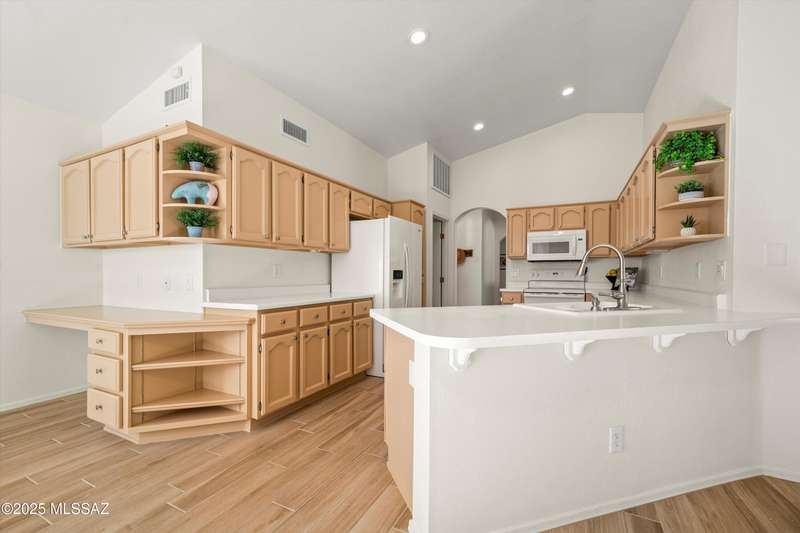 Outstanding value and move-in-ready condition! Nestled in the heart of SaddleBrooke's active adult community, this lovely Topaz model offers 3 bedrooms, 2 beautifully remodeled baths, and a spacious floor plan designed for your ideal retirement lifestyle. The great room provides plenty of space for entertaining or hosting game night, while the large covered patio makes it easy to extend the fun outdoors. Enjoy a private, enclosed backyard--perfect for pets or even a future pool--and relax with morning coffee on the front patio while taking in the view. Recent updates include a new roof underlayment (2025), newer water softener and purification system, epoxy-coated garage and driveway, plus new wood-grained tile in key living areas. Don't wait--come see this gem today!