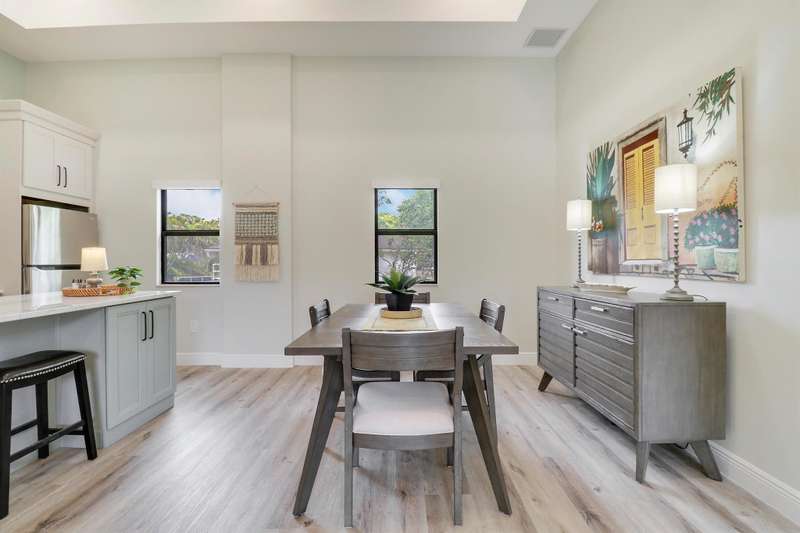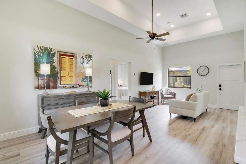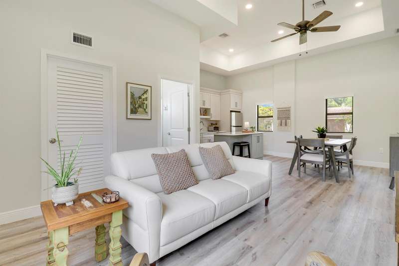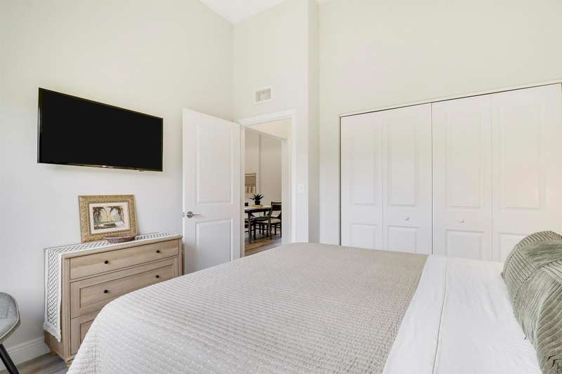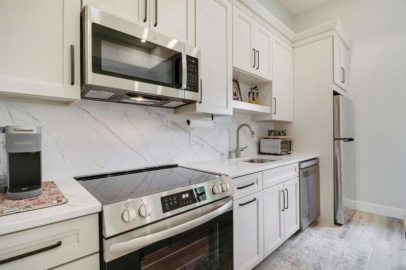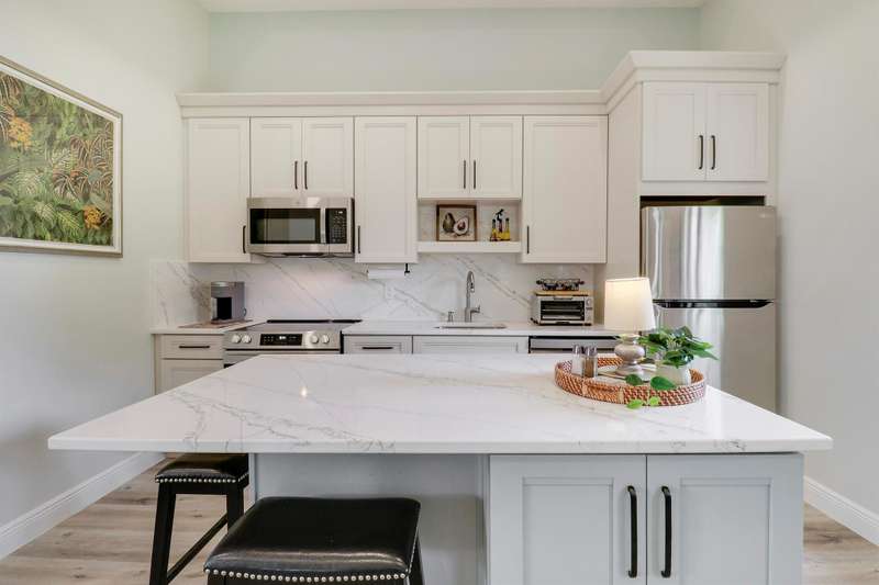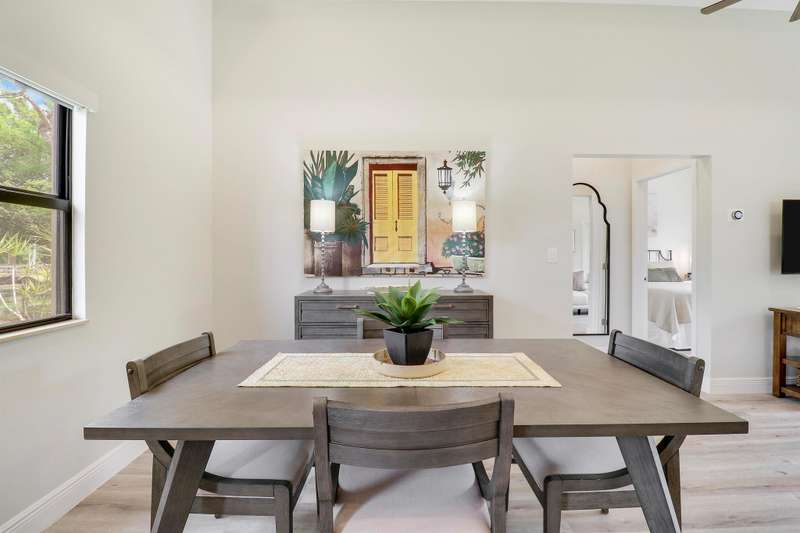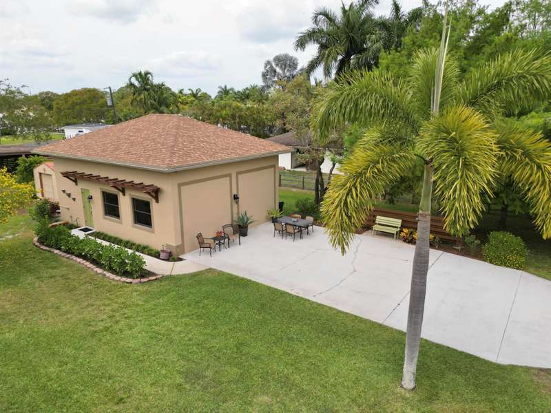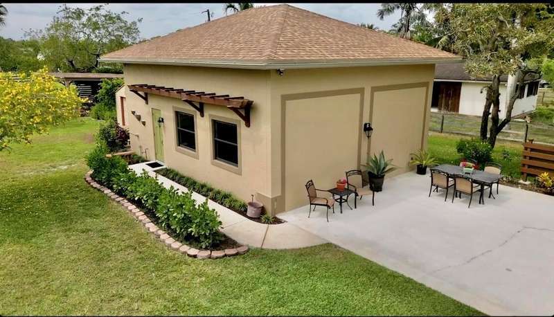 Discover tranquility and contemporary comfort at this stunning, brand new guest house, ideally situated in a serene and quiet location perfect for your Polo Season stay. Impeccably built and never before occupied, this inviting residence features 2comfortable bedrooms, each with a queen size bed, one offering a full closet and the other equipped with an armoire closet. Enjoy luxurious touches throughout, including 14 foot ceilings with stylish 12 inch soffits, sleek quartz countertops, and high end stainless steel appliances.Convenience is key with thoughtful details like soft close cabinetry, pull out drawers, an in unit washer and dryer, and a contemporary walk in shower. Relax comfortably in the living space furnished with a plush couch and chair, or enjoy entertainment