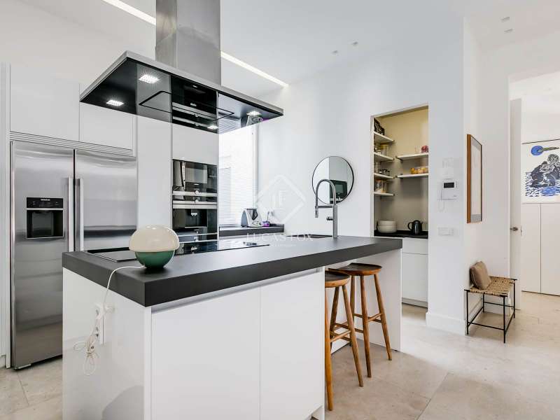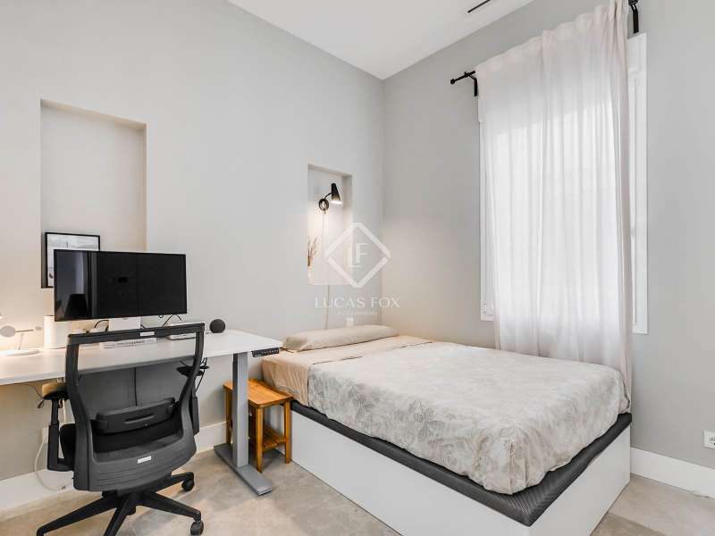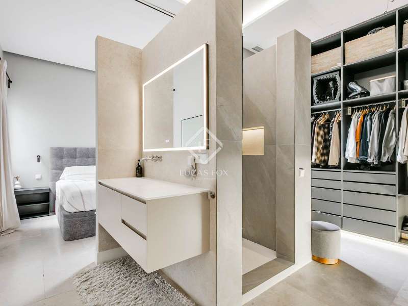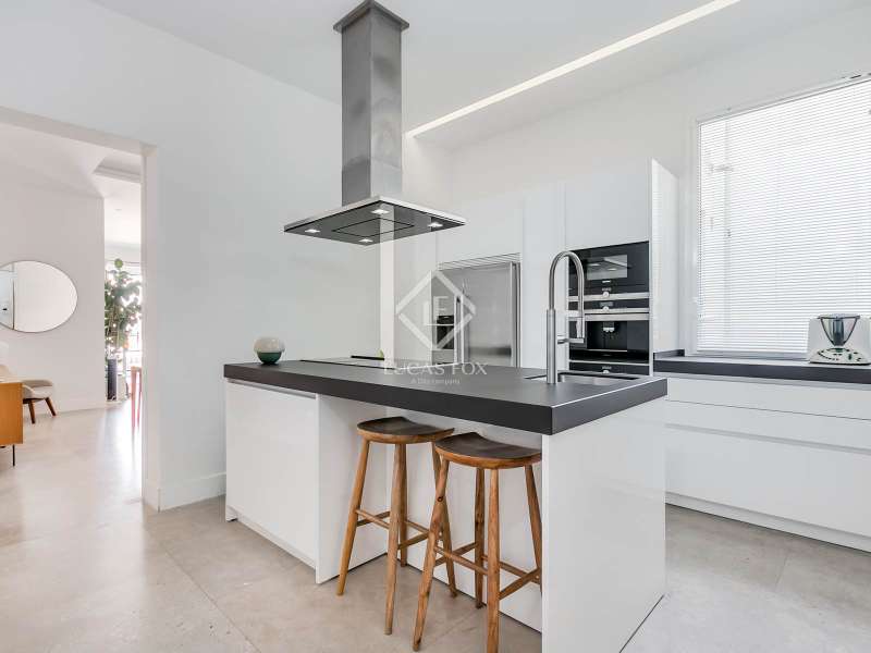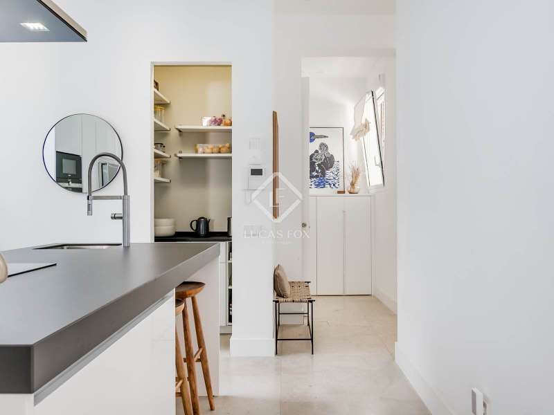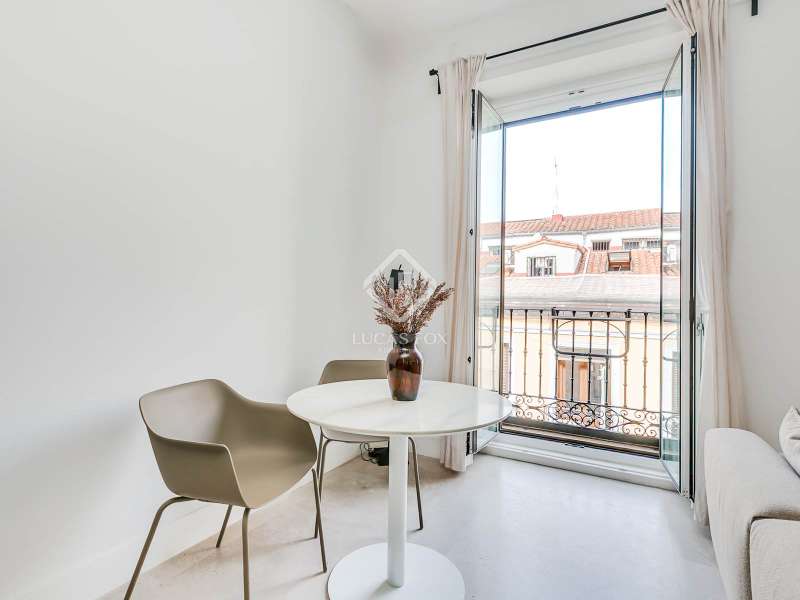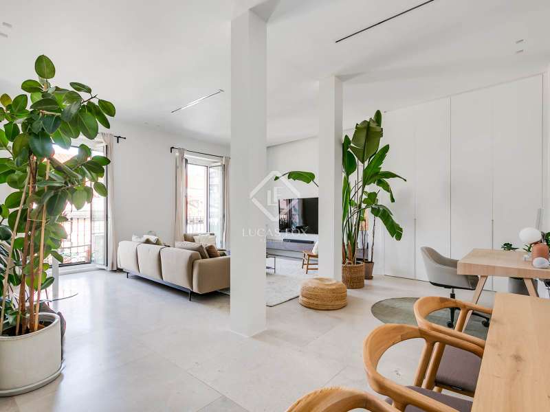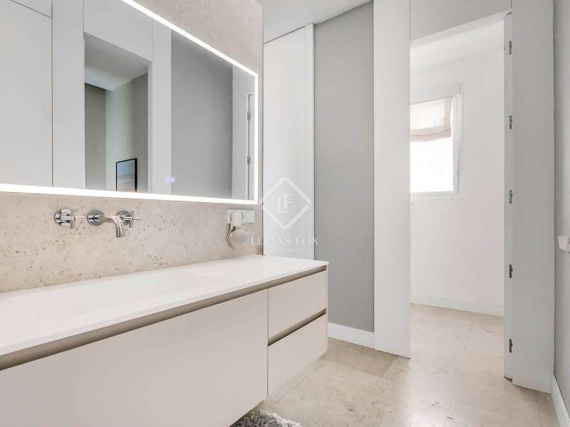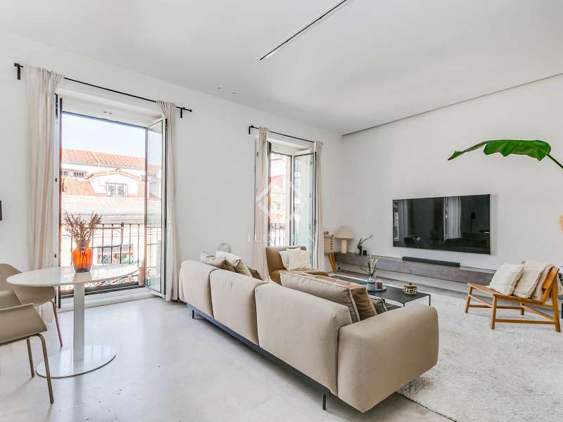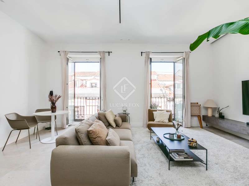 Lucas Fox presents this spectacular 158 m² apartment, located on the fourth floor in the Justicia neighborhood of Madrid. The property receives abundant natural light throughout the day, thanks to its large windows with balconies overlooking the street. Furthermore, its ceilings of over three meters maximize the spaciousness. The property has two bedrooms with private bathrooms: the main bedroom with a spacious dressing room and private bathroom , and a second bedroom with a dual- access bathroom , also ideal for guests. The spacious and elegant living-dining room receives abundant natural light, access onto the balconies. The kitchen is equipped with high-end appliances and designer furniture and includes a practical pantry. The property was completely renovated five years ago and is in impeccable condition. Highlights include indirect lighting in the ceiling and floor, built-in wardrobes, natural stone floors, and wooden shutters on the balconies. All windows offer first-class thermal and acoustic insulation, while the ducted air conditioning with a digital thermostat provides great comfort year-round. La Finca has an elevator, access adapted for people with reduced mobility, and a concierge service with a live-in concierge. A unique opportunity to live in the Justicia neighbourhood , with a variety of first-class dining, cultural, and leisure options in Madrid.