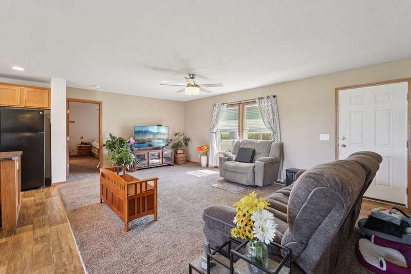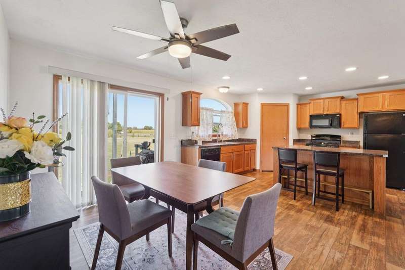 Enjoy 2 acres of peaceful country living in the spacious 1680 ft. ranch style home.. The eat-in kitchen is equipped with large walk-in pantry, staggered cabinetry, range, refrigerator, dishwasher, microwave, and a center island with eating bar - ideal for casual dining and entertaining. Retreat to the owner suite complete with oversize walk-in closet and private bath. The generous size laundry room offers added convenience, while the fenced pasture area makes the property great for animals or hobby farming. Quick possession!