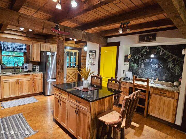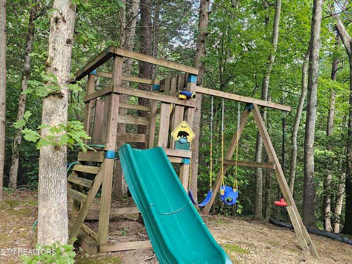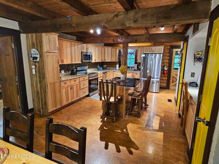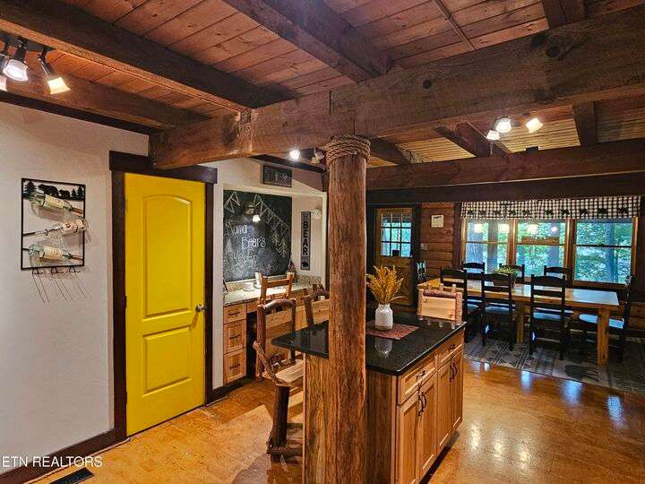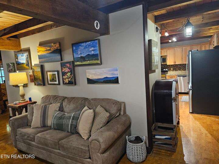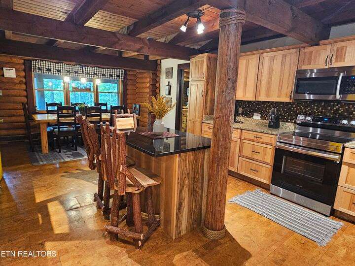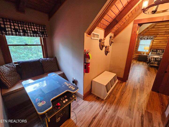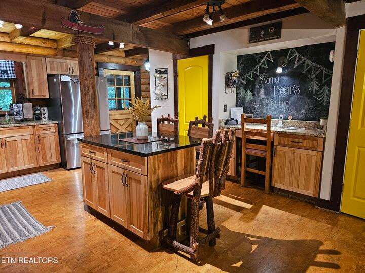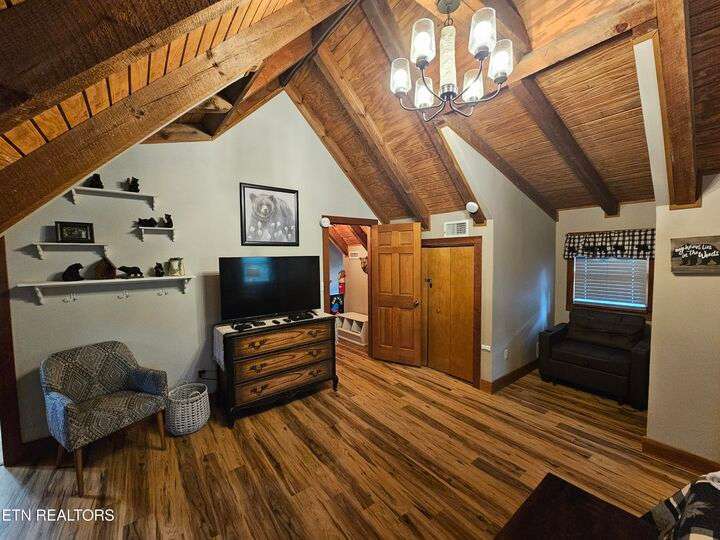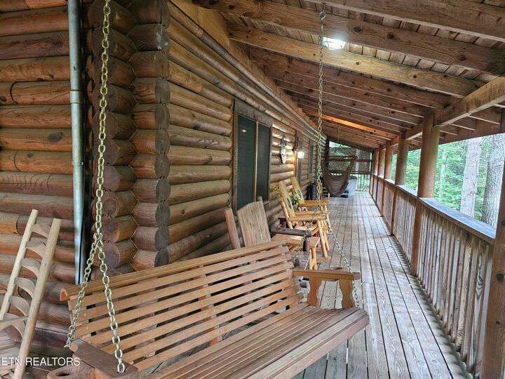 Charming 3BR/2BA Log Cabin in Gatlinburg's Arts & Crafts District - Prime Investment in the Great Smoky Mountains! Opportunity Location, charm, and income potential! This stunning 3-bedroom, 2-bath log cabin is nestled in a private setting in the highly desirable Arts & Crafts District of Gatlinburg—just minutes from downtown attractions, dining, shopping, and the Trolley stop. Step inside to discover vaulted and beamed ceilings, a warm and inviting living room with a floor-to-ceiling stacked stone hearth, and a wood-burning stove that creates the perfect mountain cabin ambiance. The fully furnished, turn-key home is ready to move in or rent immediately and is already a proven short-term rental income producer, making it a fantastic investment opportunity. The main level features a spacious primary suite with a king-size bed and an updated en-suite bath with a custom stone walk-in shower. Upstairs, you'll find all-new flooring, a modern full bath, and two additional generously sized bedrooms. The extra-large second bedroom includes another king-size bed, while the oversized bonus area is perfect for groups, offering built-in bunk beds (3 twins), a queen bed, Air Hockey, and Foosball—comfortably accommodating up to 9 guests. The kitchen is fully equipped with stainless steel appliances, granite countertops, a breakfast bar, and a cozy eat-in dining area—ideal for entertaining. Enjoy the great outdoors on the expansive wrap-around covered porch, complete with rocking chairs, porch swings, hammocks, a hot tub, and a high-top table and chairs—plus a stone patio with grill space for evenings under the stars. Additional features include: Smart Home technology with Google integration & Nest thermostat system. -Walking distance to Trolley stop and local restaurants -Close to downtown Gatlinburg, the Parkway, and Dollywood -Sleeps up to 9 comfortably Strong past rental history with impressive ROI potential Don't miss this rare opportunity to own a beautiful, income-generating cabin in one of Gatlinburg's most popular and walkable locations. Whether you're seeking a personal mountain retreat, a vacation rental, or an investment property—this cabin checks all the boxes!