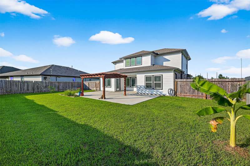 Step into this beautiful D.R. Horton home and you will immediately be struck by the light-filled living room which is open to the second floor and features two stories of windows flooding the room with natural light. The kitchen is anchored by an immense island which can seat several and is appointed with stainless steel appliances. The spacious primary suite also resides on the first floor allowing easy living. The second floor centers around the game room/second living room and has three bedrooms, including two with walk-in closets. Finally, you can begin your day and end your day outside on either the covered patio or under the beautiful pergola. Enjoy the community park and swimming pool right across the street! This house is ready for its next owner.