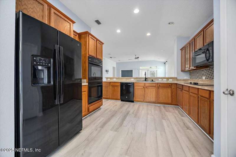 Imagine effortlessly hosting friends and family in this stunning, open-concept home, where every detail has been thoughtfully designed for ease and enjoyment. The expansive, light-filled layout with durable luxury plank flooring provides the perfect backdrop for creating cherished memories. A chef's kitchen, equipped with a double oven and a large pantry, anchors the space, making meal prep a joy while still being part of the family room conversation. Retreat to the private owner's suite, featuring a custom-built walk-in closet and an opulent bath where you can soak in the garden tub or refresh in the step-in shower. A bonus room, accessible through elegant French doors, offers flexible space for your unique needs. Enjoy quiet evenings or lively summer BBQs on your screened-in lanai and extended patio. Home is wired for fiber, Ethernet, and ceiling ceiling surround sound with one master panel. Plus, a private well for the sprinklers offers a refreshing savings on your monthly bills. Security system pre installed with contract rate transferable to new owner. This impeccable, move-in-ready home is waiting for you to begin your next chapter!