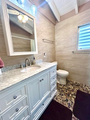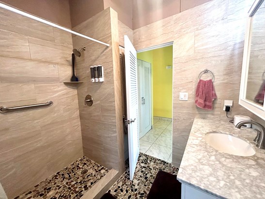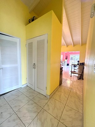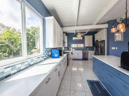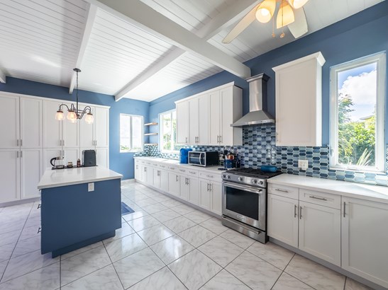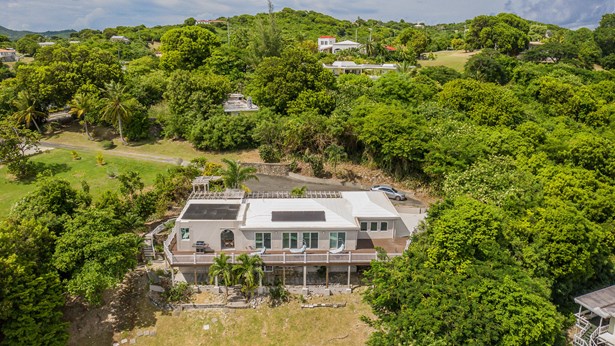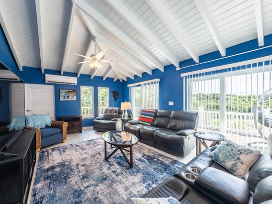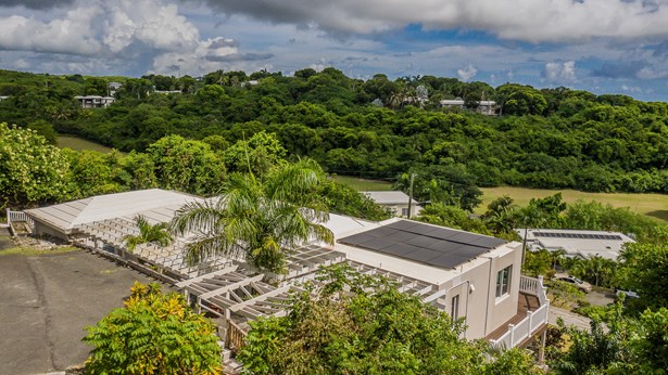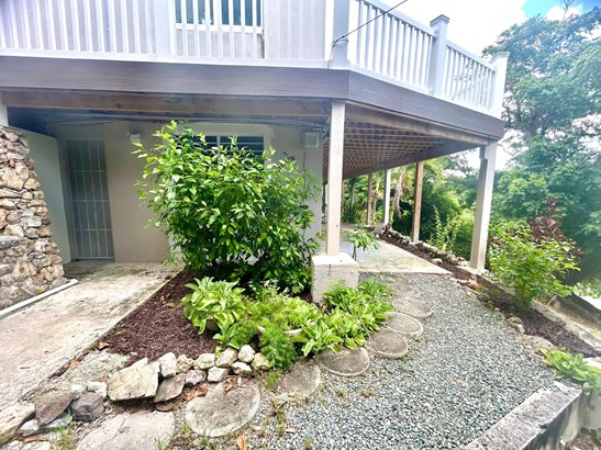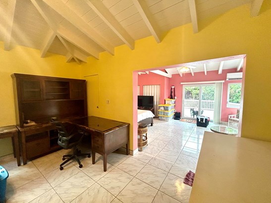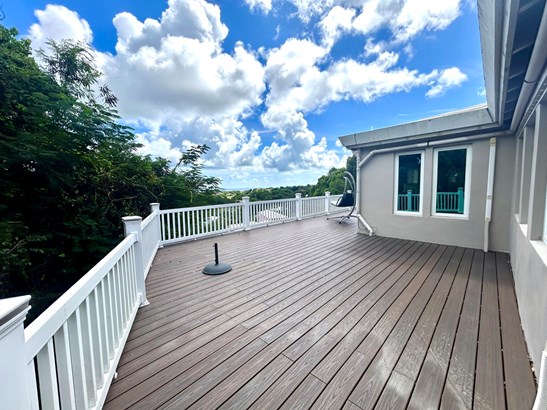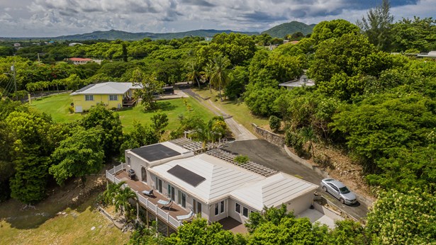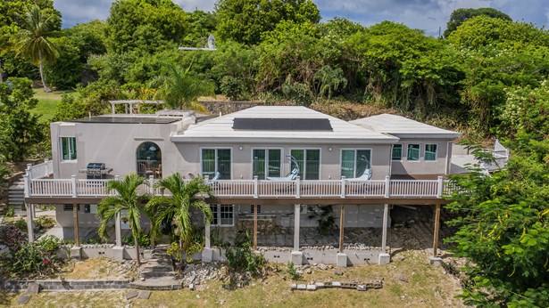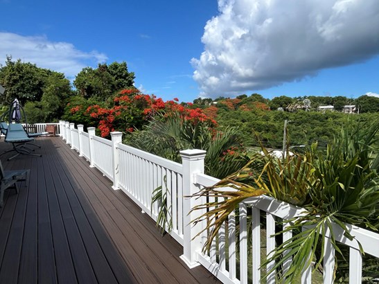 This stunning home nestled in the sought-after neighborhood of Mary's Fancy is a true gem that offers a perfect blend of luxury and functionality. As you enter through the solid oak arched entryway, the meticulous upgrades that distinguish this property are immediately apparent. The main residence boasts two generously sized bedrooms, each with its own ensuite bathroom. The primary bedroom includes a spacious bonus office area, ideal for remote work or personal projects. The second bedroom is equipped with a custom Murphy bed, offering flexibility and optimizing the living space. The kitchen is a haven for culinary enthusiasts, featuring Corian countertops that blend durability with sophistication, along with top-notch appliances that elevate the cooking experience. Designed withsustainability and peace of mind in mind, the home is fitted with hurricane impact windows and an upgraded solar system with 20 solar panels and net metering, ensuring both energy efficiency and cost savings. Outdoor living is enhanced by a recently expanded wrap-around deck, showcasing new Trex decking and solar lights. The beautifully landscaped property is adorned with a variety of fruit trees, including starfruit, noni, and mango, as well as an Indian almond tree, creating a tropical retreat in your own backyard. The newly remodeled lower-level one-bedroom apartment, complete with its own separate electric meter, offers potential rental income or a private retreat for guests. This remarkable property embodies style, comfort, and functionality, making it the ideal home for those dreaming of a paradise in St. Croix. Seize the opportunity to claim this extraordinary residence as your own!