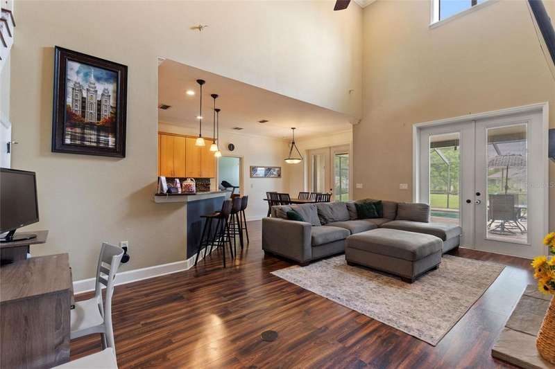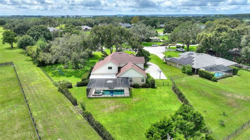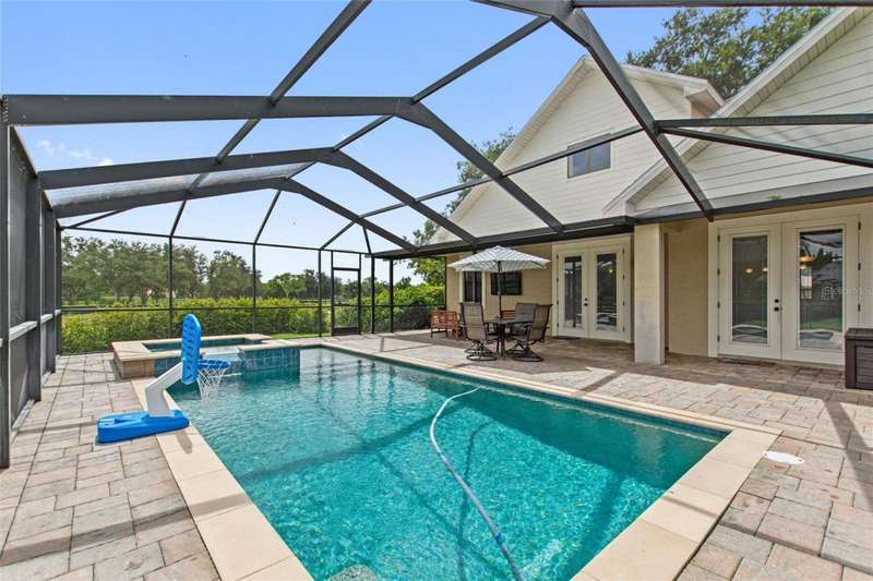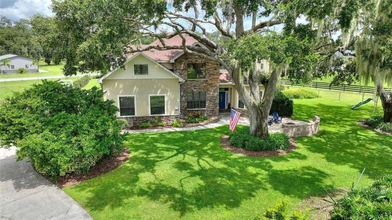 Stunning 5-Bed, 3-Bath Custom-Built Pool Home perfectly positioned on a lush .65-acre lot. Located in a small neighborhood of custom homes on large lots, this is a prime location with easy access to Winter Haven, Lakeland, I-4, The Polk Parkway, and beyond! High-end features throughout, towering ceilings, and a HUGE BONUS/MEDIA ROOM make this the perfect place to call home. Situated at the end of a cul-de-sac, the home is set back from the street for increased privacy, while the extended curved driveway and mature oak trees, paired with the home's striking design, create exceptional curb appeal. The front porch incorporates a large paver patio with built-in seating and fire pit - the perfect place to enjoy a beautiful Florida evening. Upon entering the home you're welcomed by soaring ceilings and a warm, inviting color palette. A versatile flex room off the entry offers endless possibilities - whether for formal living, dining, or even a home office. The living area showcases beautiful stone work, custom cabinetry and french doors that lead to the screen pool deck and lanai. The kitchen is a chef's dream, contemporary Maple cabinetry is highlighted by a splash of color from the distinctive backsplash - an area rich with character and charm. The kitchen is also open to living and dining area, and open the doors to the pool deck to create the perfect place for entertaining. The spacious primary bedroom, conveniently located on the first floor, features a large walk-in closet and an en-suite bathroom with a dual vanity, beautifully tiled shower, and large garden tub. Two of the guest bedrooms are located on the first floor, as well as a guest bathroom easily accessible from the main living area. The second floor has two very large guest bedrooms and a guest bathroom with a trendy design. An oversized media/bonus room upstairs is great for a play room, theatre, office, 6th bedroom, or so much more - the possibilities here are endless! A walk-out attic space upstairs is a great storage space for holiday d?cor or other personal items that would normally take up valuable space in the garage. The stunning SALT WATER POOL, built in 2016, boasts a modern design and is complete with a spa, sun-shelf, propane heat, LED lighting, a screen enclosed paver patio, and covered seating area. The huge back yard is FULLY FENCED, adding another space for outdoor enjoyment! Additionally, a whole home water filtration and softener system adds yet another high-end amenity. This house has it all, character, high-end finishes, a beautiful pool, outstanding back yard, and more. Schedule your private showing today!