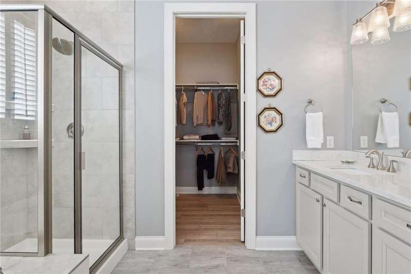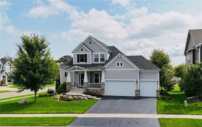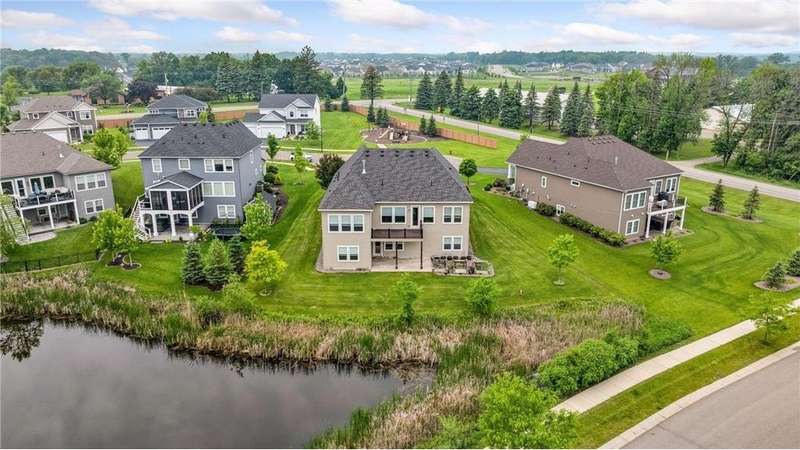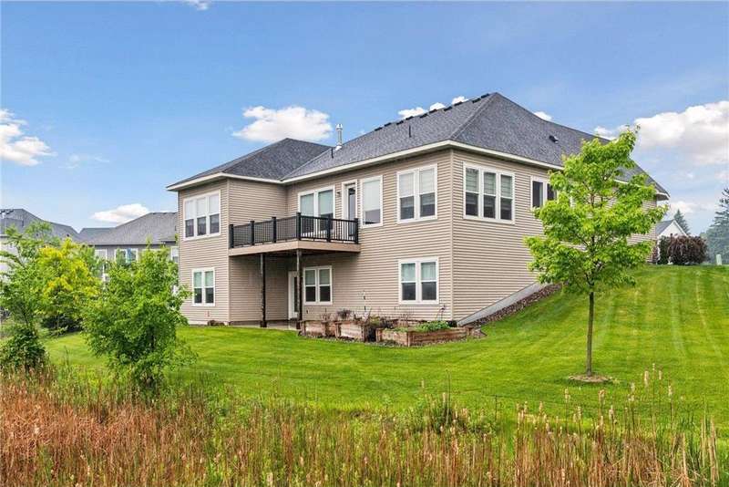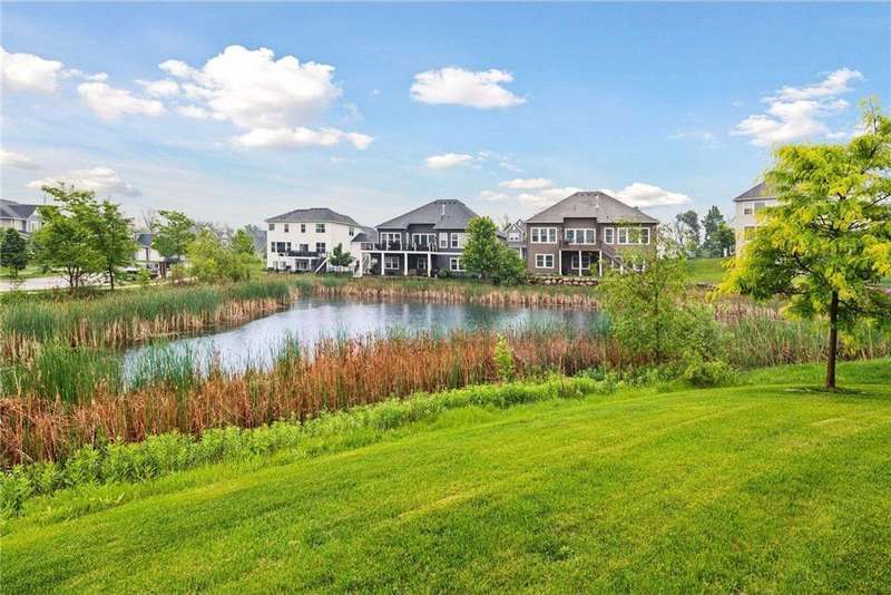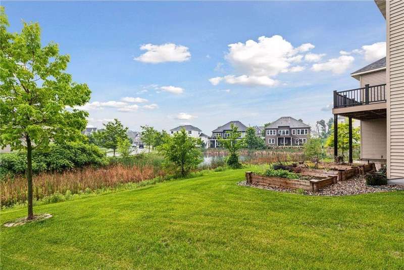 Attention to detail shines through in this stunning David Weekley build. If you are looking for a fantastic rambler with finished basement and open floor plan which offers great practicality and functionality, and provides great privacy in the front and back of the house, all in a convenient location - this home is a MUST see. Enter the wide hallway of the first floor with 10ft high ceilings which flows into the open concept kitchen and living spaces, all with luxury wood plank flooring and large bright windows. A large primary suite on main level with primary bathroom and walk-in closet provides the ultimate retreat. The additional second bedroom on the main floor is completely separated allowing for privacy for the whole family. The lower floor also with 9 ft high ceilings and multiple large bright windows, two bedrooms and bathroom. Built in in 2017, the owners lived in the home only 5 months a year. The architects in designing the house considered the site optimizing the home for views, efficiency, and practicality. Enjoy the stunning views from both floors of the pond and the neighborhood. Enjoy the beautiful private deck, ceramic tiled patio, fireplace, dual zone heating and cooling, whole house water softener, upgraded appliances, Solid doors inside the house, close to schools and shopping. Enjoy planting in the beautiful 3 no plow raised gardens, which add beauty to the back yard - enjoy eating vegetables all summer long and freezing the extra for winter. This turnkey home is move in ready.