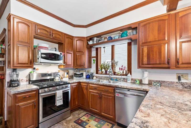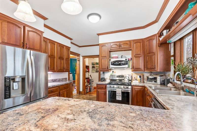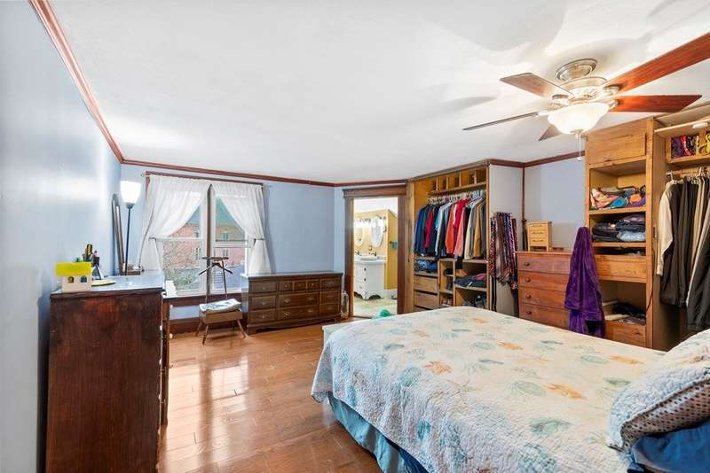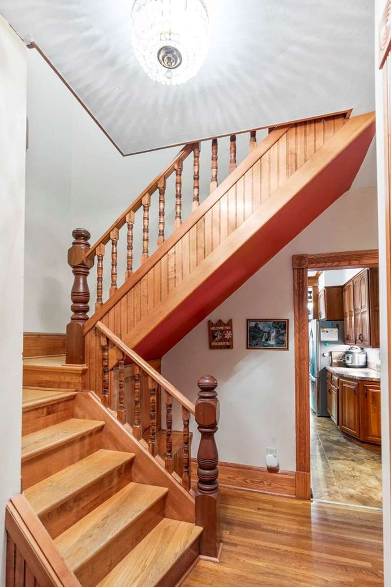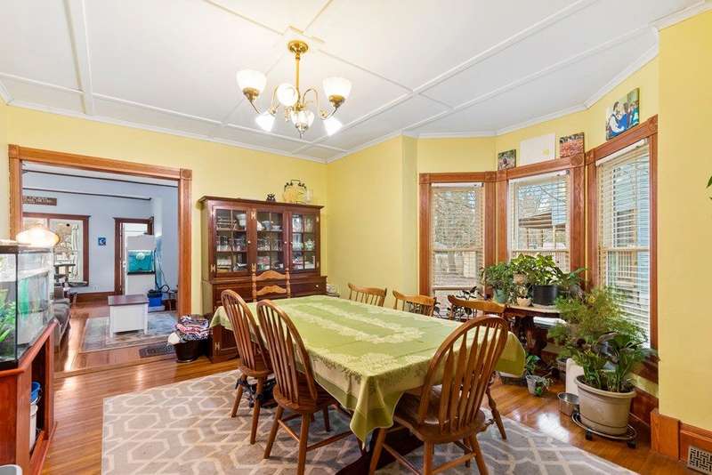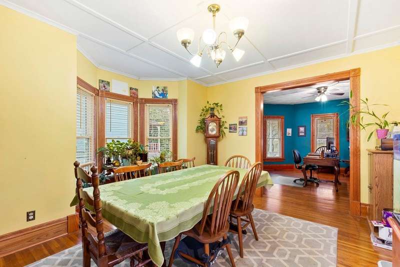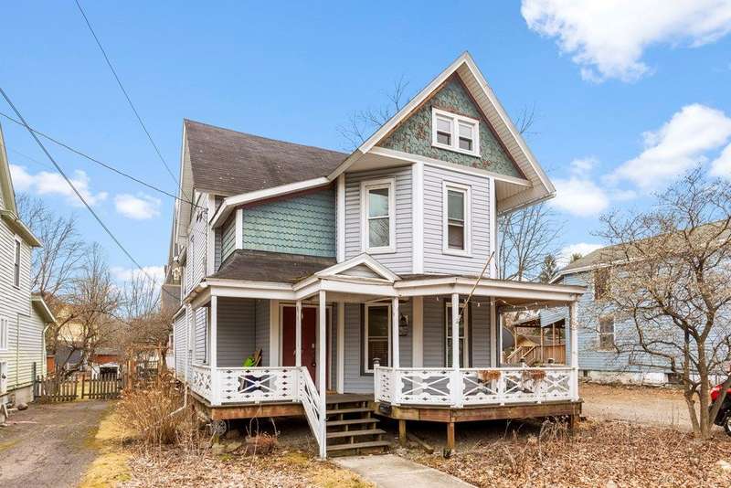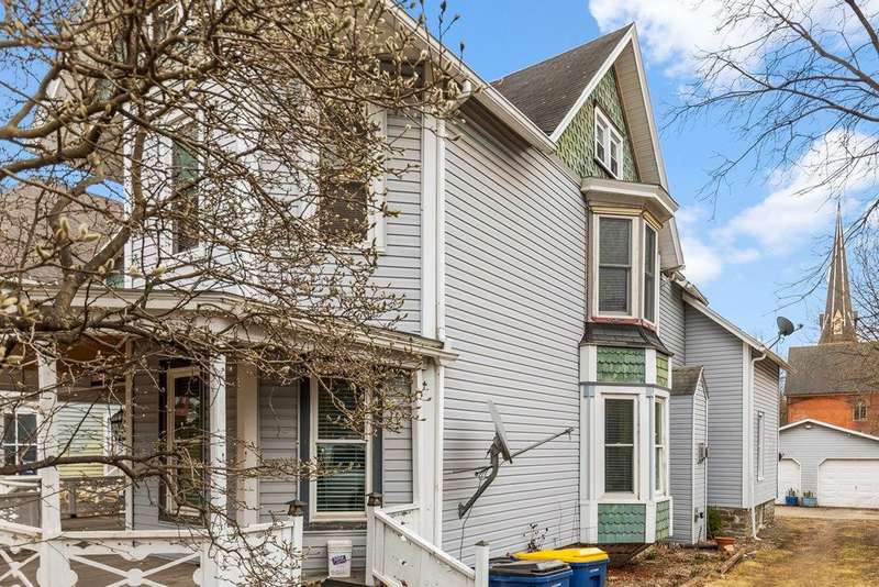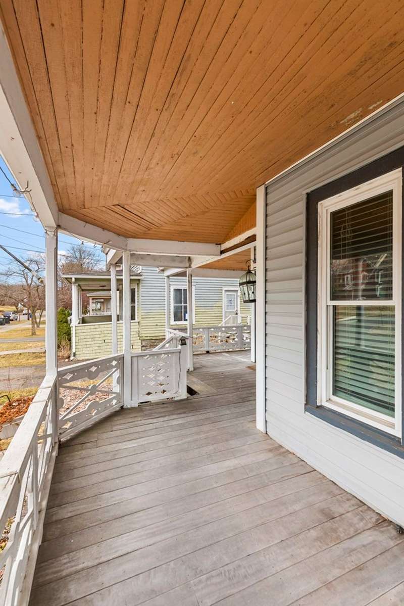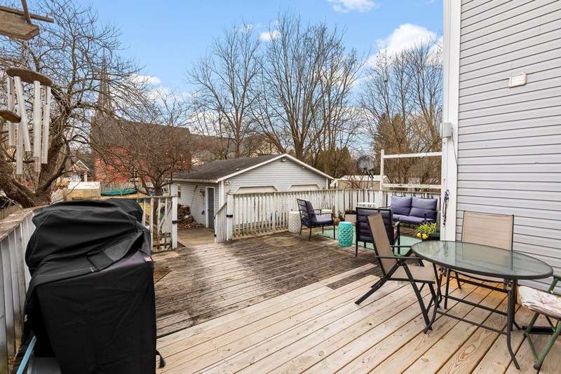 Discover this spacious 5-bedroom, 3 bathroom Victorian gem, featuring a primary suite with an attached full bathroom. Gorgeous hardwood floors and woodwork add timeless elegance throughout the home. Enjoy the updated kitchen and bathrooms, designed for modern living while maintaining the home's classic charm. Relax on the covered front porch or entertain guests on the large rear deck overlooking a generously sized in-town lot. Additional features include tank-less hot water for ultimate convenience, first floor bedroom & full bathroom, energy efficient vinyl replacement windows, and a 2-car detached garage. Don't miss the chance to own this captivating blend of historic charm and contemporary comfort!