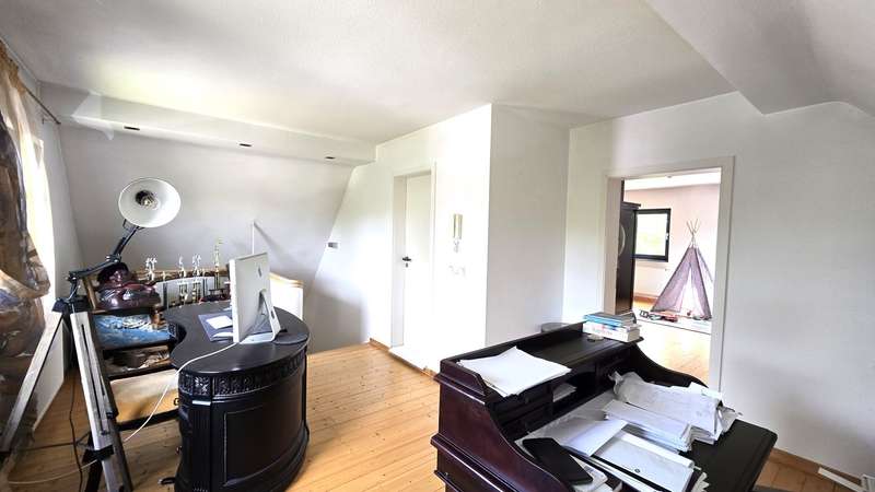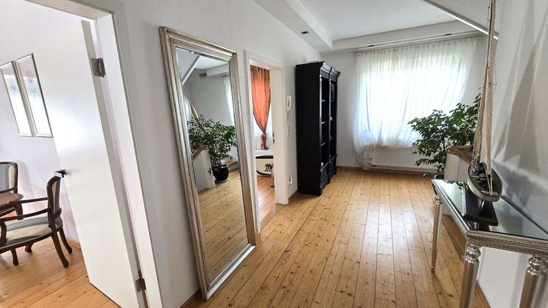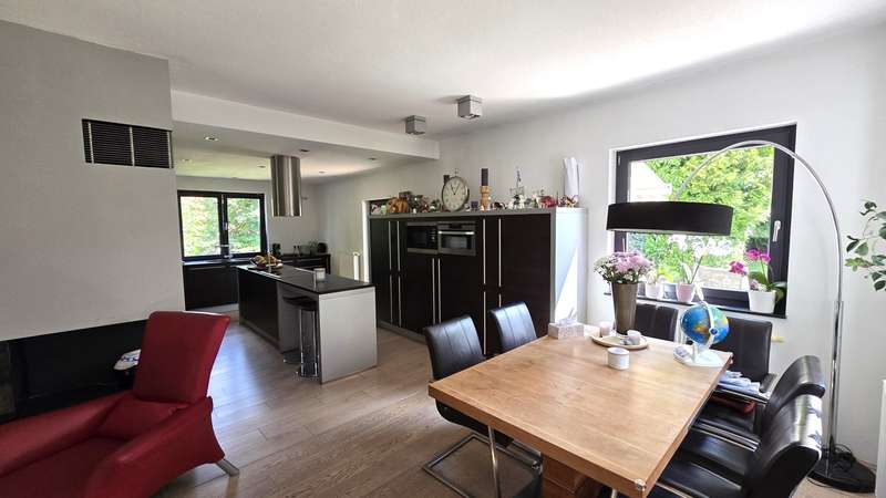 This detached single-family home with a living space of approx. 200.01 m² and a plot of approx. 895 m² is located in a sought-after residential area. The quiet location offers a pleasant neighborhood and a well thought-out infrastructure. There are shopping facilities, schools and kindergartens nearby. Shopping and errands can easily be done on foot. The house has a total of five rooms that can be used flexibly. Three separate bedrooms offer residents private retreats. Two well-equipped bathrooms ensure comfort and a smooth daily routine. The clearly structured floor plan separates the living and relaxation areas perfectly. On the first floor is the large, light-flooded living and dining room with direct access to the terrace and garden. The generous window areas create a friendly atmosphere and let in plenty of natural light. The kitchen offered plenty of storage space and was equipped with a high-quality cooking island and appliances. The upscale furnishings of the house were evident in the well-kept parquet and tiled floors, the modern fittings and the high-quality doors. There are two bedrooms on the upper floor, which can be used in a variety of ways. One of the rooms is ideal as a master bedroom due to its size, while the other rooms could be used as a children's room or study, for example. A large, contemporary bathroom with shower and bathtub added further amenities. There were also two versatile rooms on the top floor. One of the rooms was ideal as a children's room, while the other rooms could be used as a study, for example. There is a bathroom with a shower on this level. The spacious garden area, which until recently provided space for various uses such as play, leisure and hobby gardening, can still be used in a variety of ways. The outdoor area also includes a large terrace, which invites you to linger on warm days and can also be used as an outdoor meeting place in the future. Special highlight: The house was completely renovated in 2009 to the highest standards. The exclusive design was carried out by one of the region's most renowned architectural firms, which created a sophisticated combination of timeless elegance and modern living comfort. As a result, the property is not only technically and structurally of an excellent standard, but also impresses with its architectural uniqueness. A particular highlight: the house was completely renovated in 2009 to the highest standards. The exclusive design was carried out by one of the region's most renowned architectural firms, which created a sophisticated combination of timeless elegance and modern living comfort. As a result, the property is not only technically and structurally of an excellent standard, but also impresses with its architectural uniqueness.