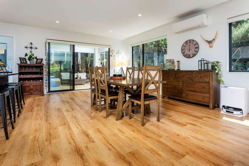 Located in the popular Orewa community, this impressive 5-bedroom, 3-bathroom home offers the perfect mix of space, comfort, and modern style. With its flexible layout and coastal charm, it’s more than a home—it’s a lifestyle. The ground floor includes a private suite, ideal for extended family or guests. It features a master bedroom with walk-in wardrobe and ensuite, plus its own living room that opens to a covered patio for easy indoor-outdoor living. Upstairs, the home’s heart is a light-filled open-plan living and dining area, complemented by a striking white kitchen with a bold black island, premium appliances, and a full secondary kitchen for those who love to entertain. The living space extends outdoors to both a covered patio and an expansive balcony, where serene reserve views create a truly tranquil backdrop. The upper level also includes a master suite with walk-in wardrobe and ensuite, plus three more bedrooms and a modern family bathroom, ensuring plenty of room for everyone. This home offers the best of coastal living. Orewa Beach is just minutes away, perfect for swimming, walks, and weekend outings with family and friends. Families will appreciate the proximity to top local schools and the Orewa shopping center, ensuring daily convenience. With its modern design, flexible layout, and prime location, this home offers the very best of coastal living. Don’t miss your chance—contact us today to book a viewing or visit our open home.