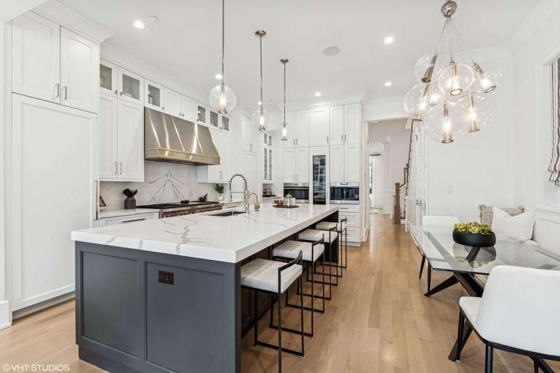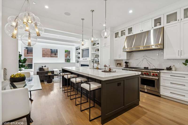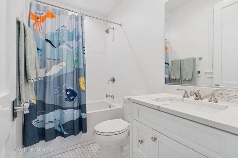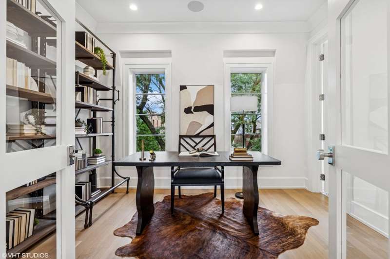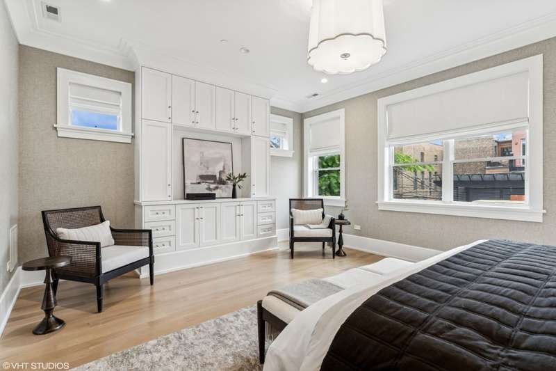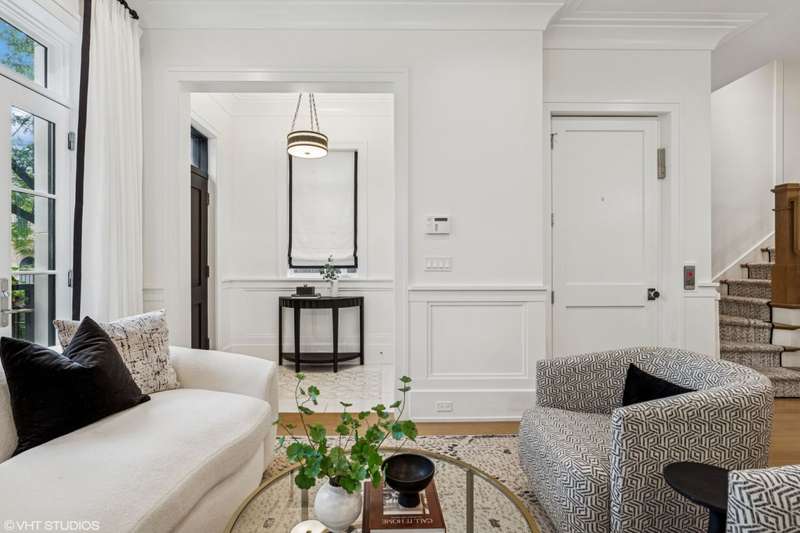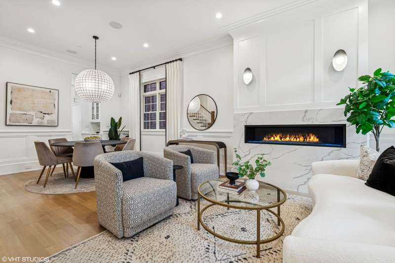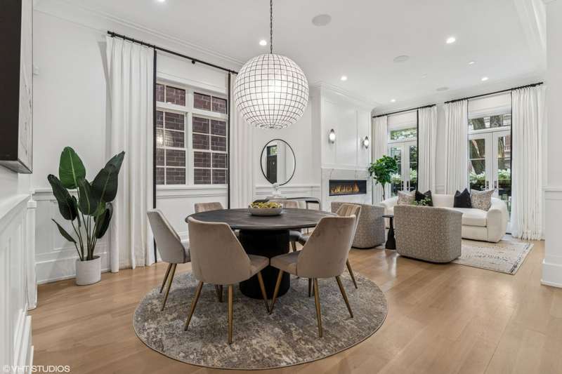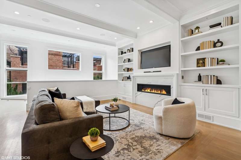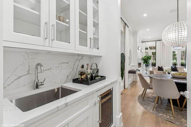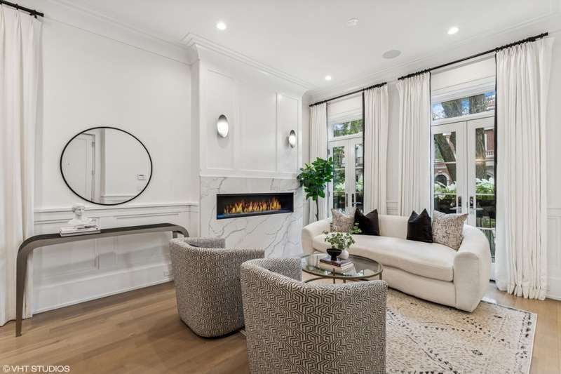 Welcome to this exquisite French-inspired limestone masterpiece nestled on one of Lincoln Park's most prestigious and sought-after blocks. Offering 6 spacious bedrooms and 5.2 elegantly appointed bathrooms across four levels of luxurious living, this residence is a true architectural gem that blends timeless design with modern sophistication. Step inside to experience a home flooded with natural light, where meticulous craftsmanship and high-end finishes are on display in every room. The main level features a stunning formal living room anchored by a gas fireplace, a gracious separate dining room, and a butler's pantry that connects seamlessly to a true chef's kitchen. Complete with an oversized eat-in island, beverage fridge, built-in breakfast nook seating, and high-end appliances, the kitchen opens into a warm, inviting family room with a second fireplace, custom built-ins, and exposed wood beams. A powder room and a mudroom round out the main level. The second level hosts a luxurious primary suite with walk-in closets, built-in shelving, and a spa-caliber bathroom featuring heated floors, dual vanities, a soaking tub, and an oversized glass-enclosed shower. Two additional bedrooms on this floor each offer walk-in closets and private en-suite baths with heated floors. On the third level, you'll find a flexible second living space with a wet bar, small fridge, and beverage fridge-perfect for entertaining or relaxing. This level also includes a full bathroom with heated floors, an office or optional sixth bedroom, and access to the expansive rooftop deck complete with covered and uncovered seating, outdoor TV, and turfed lounging space. The fully finished basement is designed for comfort and function, offering a large recreation/media room with a full wet bar, a workout room, a powder room with heated floors, and a private guest bedroom with full bath with heated floors. Enjoy elevator access on all levels, making every floor easily accessible. The home's outdoor spaces are truly exceptional, featuring a rear patio with built-in grill, fridge, beverage fridge, fireplace, and plenty of seating. The garage rooftop deck includes a pergola and even more outdoor entertaining space. With heated walkways, front steps, and part of the patio, snow removal will be a cinch. A detached garage completes this extraordinary offering. Every inch of this home is thoughtfully designed to provide the ultimate in comfort, elegance, and functionality. This is luxury Lincoln Park living at its finest.