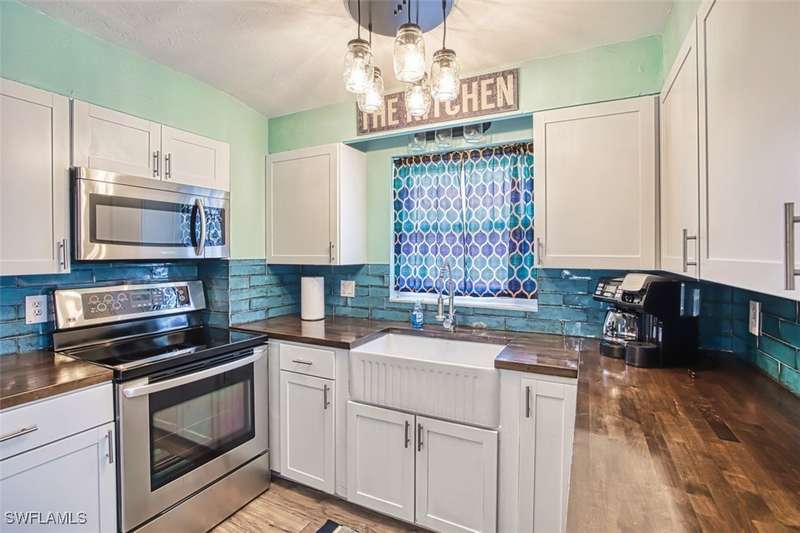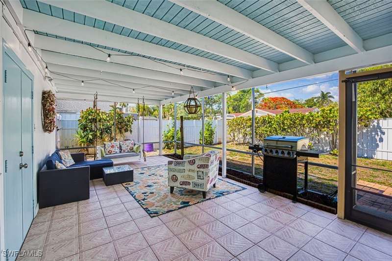Coastal Modern Charm in the Heart of Downtown Fort Myers - Fully Furnished & Move-In Ready! Welcome to 2970 Holly Road, where Coastal Modern flair meets Midcentury Modern elegance in one of Fort Myers' most vibrant and desirable downtown neighborhoods. This impeccably updated and fully furnished home blends timeless style with today's most-wanted features, offering the perfect retreat for full-time living, a seasonal escape, or an income-generating Airbnb. Step inside and be greeted by warm luxury vinyl plank flooring that flows seamlessly throughout the home, complemented by tile in one guest bedroom and bathroom. The spacious primary suite offers a peaceful sanctuary with a generously sized walk-in closet and beautifully tiled walk-in shower. Designed for both comfort and connection, the home features an open and airy layout with both a living and family room, a charming fireplace, and a custom corner bench seat dining area that invites conversation and cozy gatherings. The remodeled kitchen is complete with a country-style sink, stainless steel appliances, and richly crafted wood countertops that blend rustic charm with modern efficiency. You'll appreciate the attention to detail and quality upgrades throughout, including newer impact windows and doors (2014/2015), a recently replaced roof (2022), and an updated A/C system, Plumbing Re-pipe (2014) & Electrical/Water heater (2023) providing peace of mind for years to come. Out back, your private oasis awaits. The oversized screened lanai (324 sq. ft.) features timeless tile flooring, ambient lighting and ample space for lounging or entertaining. A bonus storage area keeps all your beach gear, tools, or toys neatly tucked away. The fenced backyard is a dream for gatherings, offering plenty of space for friends and family to enjoy evenings around the fire pit in total privacy. Whether you're looking for a turnkey home with undeniable character or a lucrative vacation rental opportunity, this one has it all. Just bring your toothbrush and start living the Southwest Florida lifestyle you've been dreaming of. Close to all downtown restaurants, boutique shops, parks, theater & nightlife. Don't miss your chance to own this rare gem and schedule your private showing today!