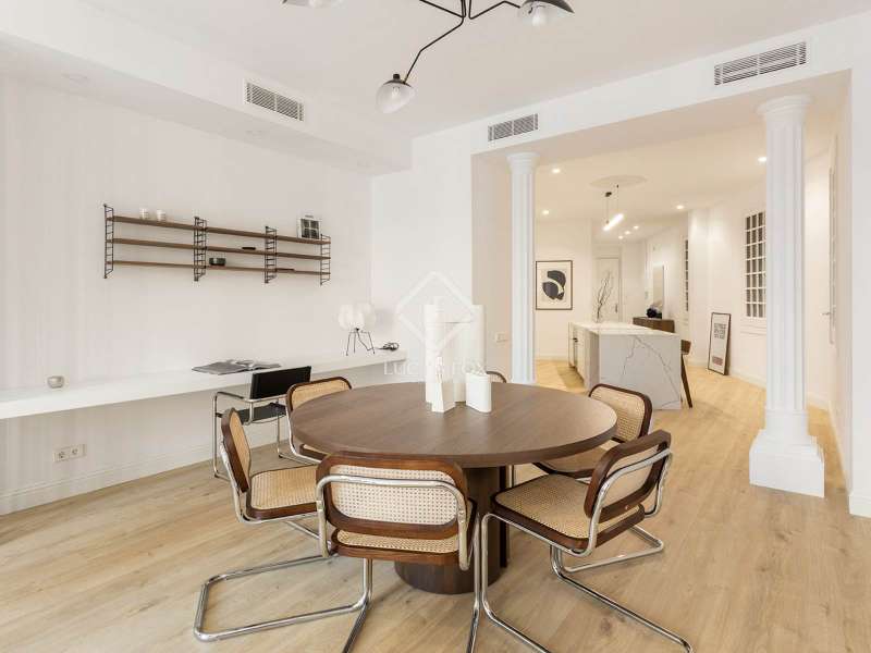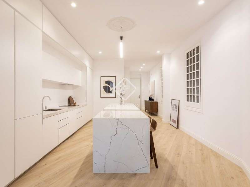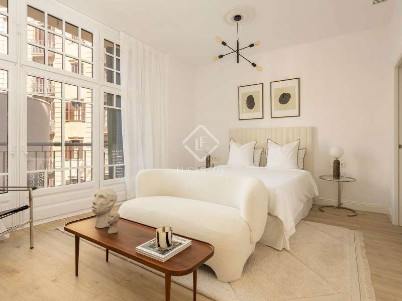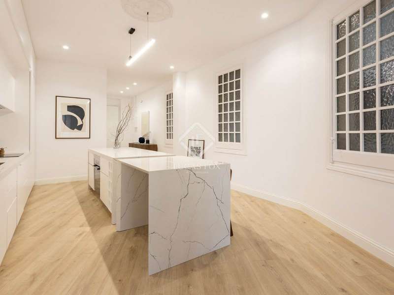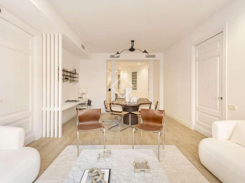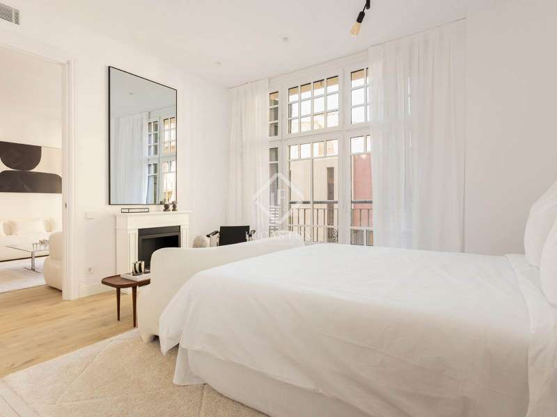 Located on Vía Laietana, within the distinguished Casa Lluís Guarro, this exceptional apartment is set in one of Barcelona’s most iconic modernist buildings. Designed in 1922 by the celebrated architect Josep Puig i Cadafalch, the building is a landmark of Catalan heritage—its grandeur now matched by a masterfully renovated interior with views of the majestic Barcelona Cathedral. With a constructed area of 156 m², this residence offers a generous and fluid layout that blends architectural history with contemporary elegance. Every detail of the recent renovation, led by renowned interior designer Cotano de Diego, has been executed to the highest standard. The result is a living space where original modernist character meets bespoke design and cutting-edge comfort. The open-plan living and dining room serves as the heart of the home, flowing effortlessly into a sculptural designer kitchen that is both visually striking and highly functional. Bathed in natural light from large windows and three charming balconies, the apartment enjoys rare and direct views of the cathedral rooftops—a daily reminder of the city’s beauty and historic soul. The property features three spacious double bedrooms, including a refined master suite measuring 18.6 m², complete with an expansive en-suite bathroom measuring 11.9 m² with a freestanding bathtub. Two additional bedrooms measuring 12 m² and 11.1 m² offer ample light and access to outdoor balconies. A modern shower room, a guest toilet, and a versatile utility/laundry room (perfect for use as a study or storage) complete the layout with comfort and practicality in mind. Every element—from the handpicked materials to the custom-made furnishings—has been thoughtfully curated to create a warm, timeless, and elegant ambiance. The apartment is offered fully furnished with exclusive, tailor-designed pieces, ensuring a seamless move-in experience and a living environment of exceptional quality. This is more than just a residence—it's a rare opportunity to own a part of Barcelona’s architectural legacy, reimagined for modern living. Ideal for discerning buyers seeking a one-of-a-kind property with historical charm, refined interiors, and sweeping views in the very heart of the city.