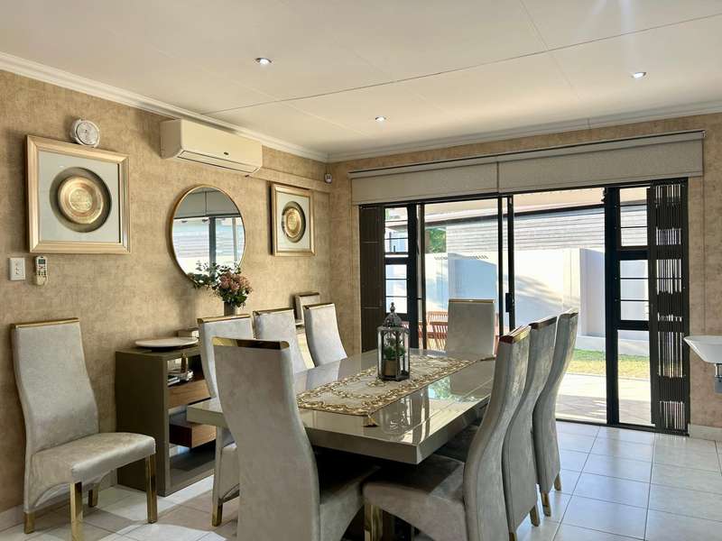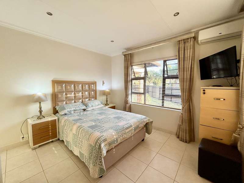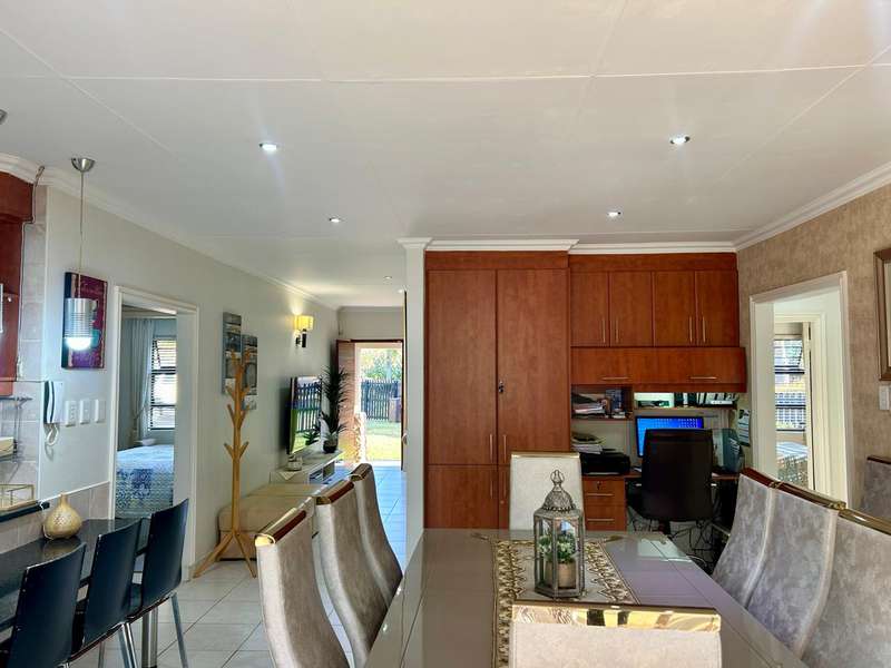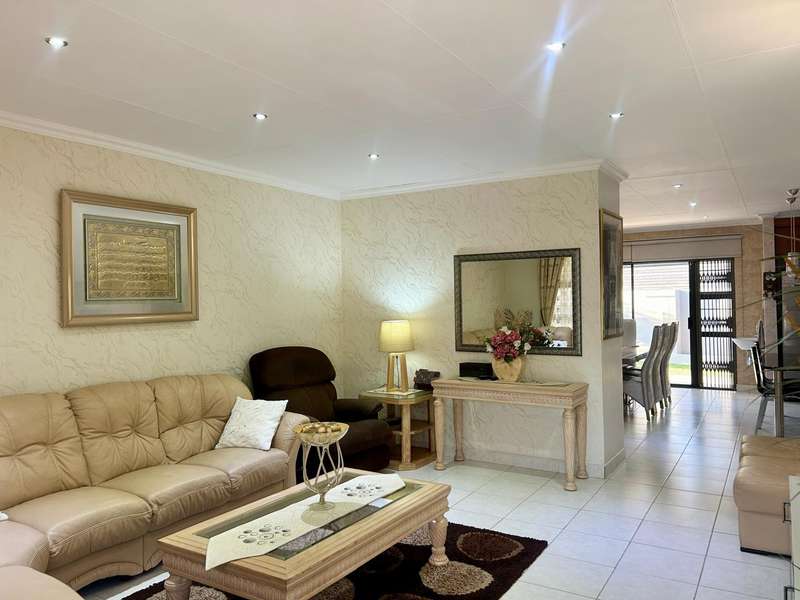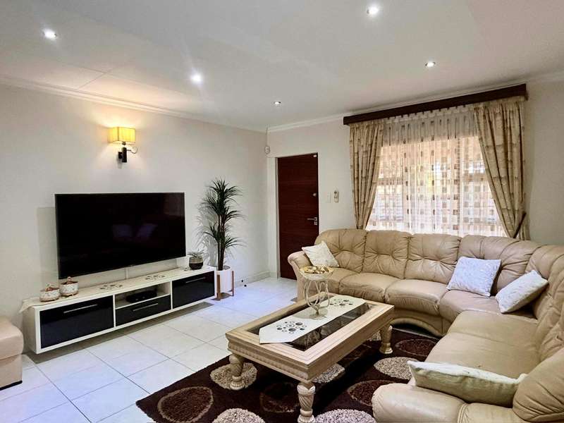 This beautifully maintained single-level home offers comfort, space, and versatility for modern family living. Featuring a generous master bedroom with en suite, a dedicated study area, and a well-designed extension that includes a separate scullery, storeroom, and a private fourth en suite bedroom—ideal for guests or extended family. Enjoy seamless indoor-outdoor living with a large front and back garden, perfect for entertaining or relaxing. The home also includes a double garage and water storage solutions for added convenience. Located in a well-run, family-friendly complex that boasts excellent amenities including a swimming pool, clubhouse, and jungle gyms, this property offers an unbeatable lifestyle.