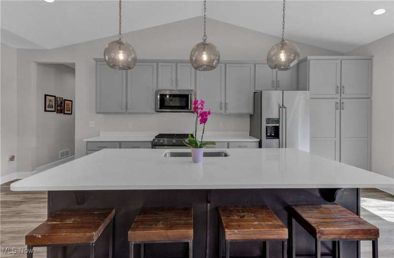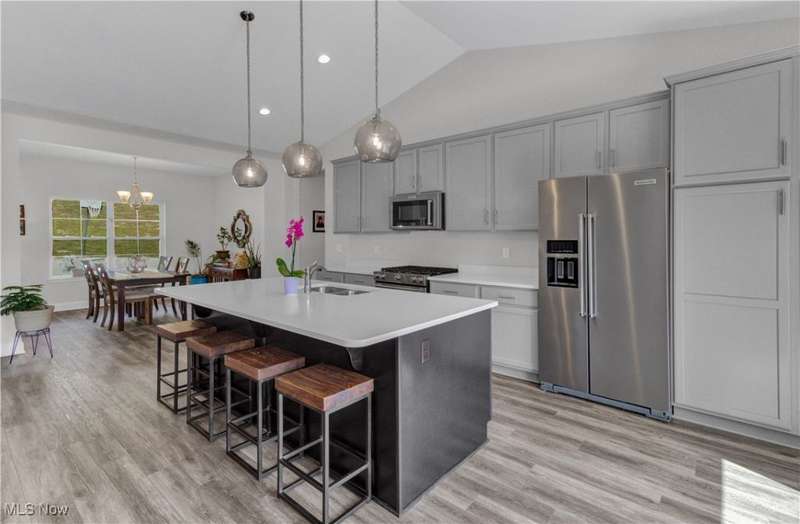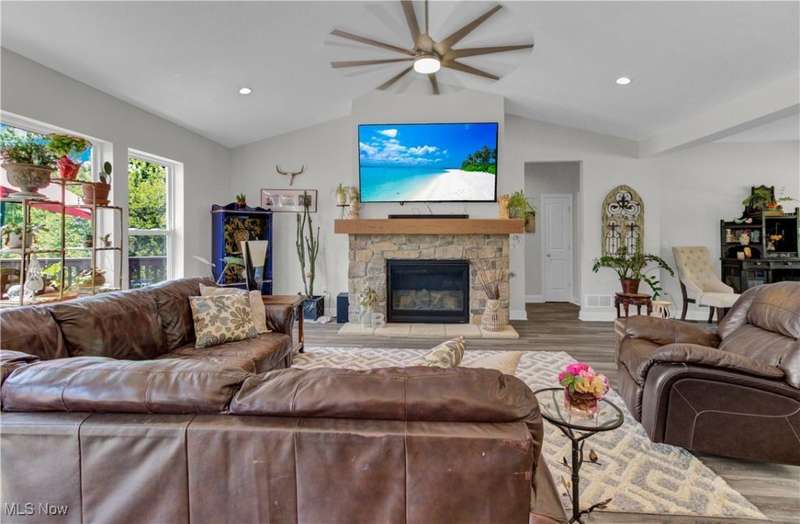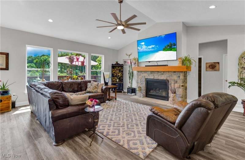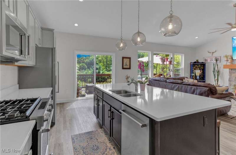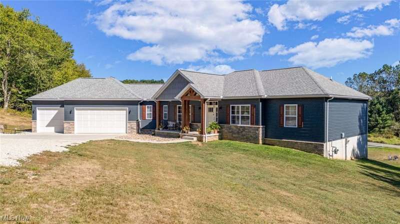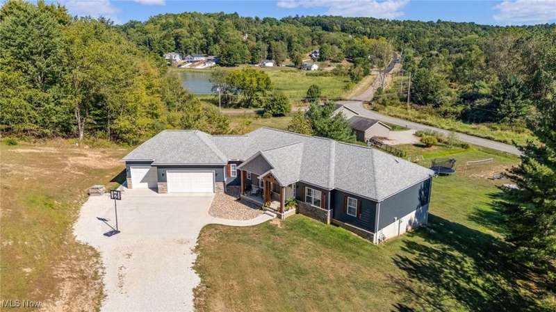 Stunning newer-built (2023) Schumaker home at Lake Mohawk on two lots with year-round lake views! The open floor plan is filled with natural light, soaring cathedral ceilings, and features a large quartz kitchen island, gas stove, and cozy gas fireplace. The private main ensuite is tucked away in its own wing with two walk-in closets, double quartz vanities plus makeup counter, linen closet, and a spacious walk-in shower. Two additional bedrooms and full bath are located in the opposite wing. Main level also includes a laundry room and half bath. The walk-out lower level is partially finished and offers endless possibilities, plumbed for a full bath. Oversized 3-car garage plumbed for gas heat. Easy access to the lake's back gate, allows for a quick commute to Carrollton or Canton. Enjoy all the amenities of Lake Mohawk?unlimited horsepower boating, swimming, 3 beaches, fishing, tennis, pickleball, clubhouse, and 24/7 gated security.