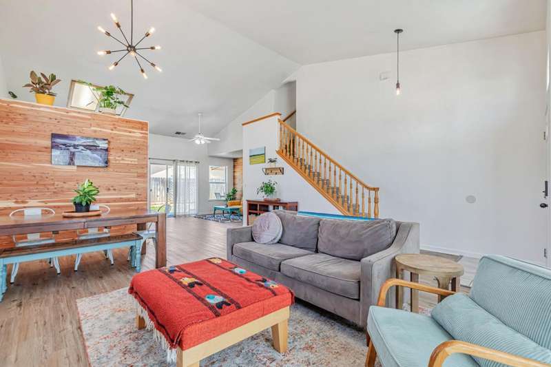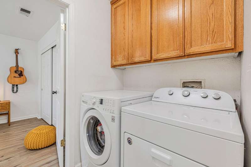 This captivating 4 bedroom, 3 full bath home offers a fantastic blend of modern upgrades and comfortable living, perfectly situated on a desirable, oversized pie-shaped lot in a quiet cul-de-sac. Step inside to discover a beautifully remodeled kitchen, boasting sleek, newer finishes and stainless steel appliances. Enjoy the warmth and style of newer luxury vinyl flooring throughout, adding a touch of elegance to every space. This thoughtfully designed home features a desirable main-level bedroom and full bath, providing flexibility and convenience. The generously sized pie-shaped lot offers a huge backyard, perfect for entertaining, family gatherings, or creating your own private sanctuary and plenty of space to store RV's. Enjoy the ultimate convenience with all appliances included, such as a washer, dryer, refrigerator, microwave, and range/oven, ensuring a smooth and effortless move-in. Location is everything, and this home delivers! Enjoy being close to top-rated schools, a variety of shopping options, and a well-regarded hospital, making daily errands and commutes a breeze. This exceptional home offers the charm and comfort needed for today's lifestyles.