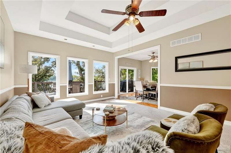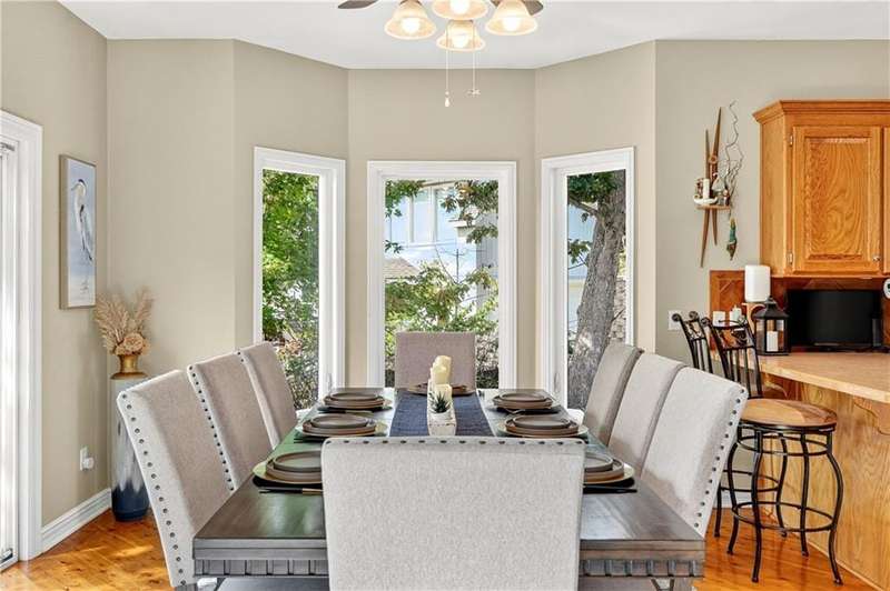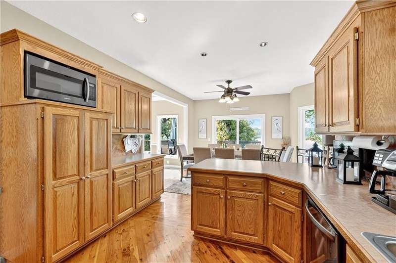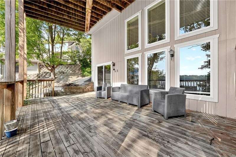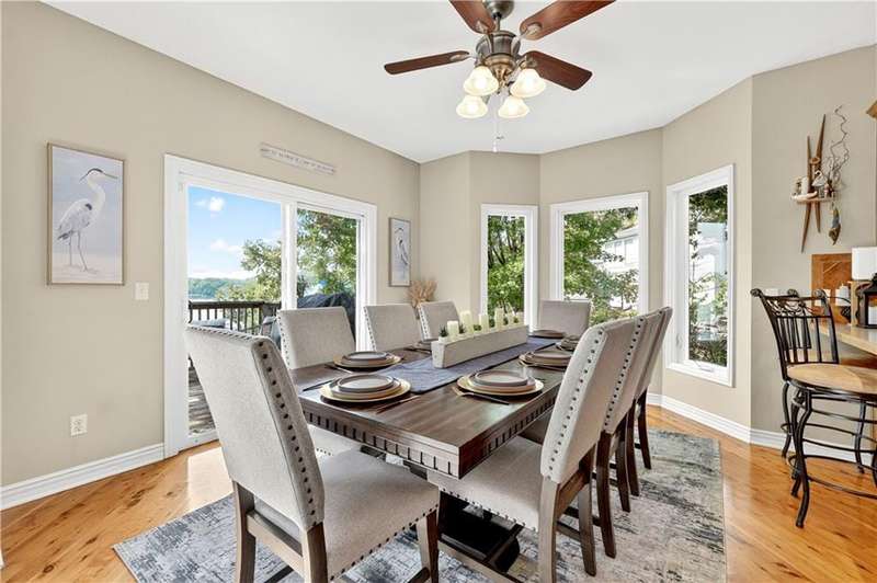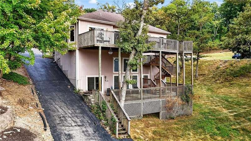 A Rare Opportunity: Inner Cove Privacy with Main Channel Views and Unforgettable Sunsets! Welcome to your lakeside retreat on Lake Lotawana, perfectly positioned in the first cove off Lake Shore Drive, this 1st Tier reverse 1.5 story offers something truly rarean inner cove property with unobstructed west views straight into the Main Channel. While most cove homes look across at neighbors, this one gazes outward, framing expansive water and some of the best sunsets the lake has to offer right from the comfort of your living, dining, primary bedroom and kitchen. From the moment you step inside, the home draws your eye through soaring ceilings and expansive windows to the sparkling water beyond.The main floor features an open and inviting layout with a spacious living room and easy access to the elevated deckan entertainers dream. The well-appointed kitchen includes stainless steel appliances, a pantry, and an oversized L-shaped island with seating, opening to a dining area that overlooks the lake. Just off the spacious living room, the luxurious primary suite offers a spa-like escape with double vanities, a whirlpool tub, walk-in shower, and a large walk-in closet. Downstairs, the lower level impresses with dramatic 18 ceilings, wall-to-wall windows, and a spacious family room complete with a wet bar for effortless entertaining. Two bedrooms sit to one side, while a versatile bonus room to the other could serve as a home office, den, or fourth non-conforming bedroom. Step out to the covered lower decka perfect spot to relax after a day on the water. At the waters edge, enjoy your private pier dock and boat lift with plenty of space to dream up plans for a future boat dock. Invite friends and family with up to 7 parking spaces. Every angle of this home is designed to remind you why the lake is so special: the views, the sunsets, and the sense of calm that makes you stop and savor the moment. Dont miss your chance to claim this unique slice of Lotawana living!