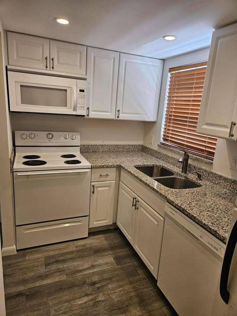 Welcome to your slice of heaven! This remodeled ground floor 1/1 unit includes AC 2024, granite countertops, new garbage disposal, fresh paint, new bathroom, all tile floors, updated closet doors + window blinds, professionally installed TVs in each room, + private screened patio - perfect for grilling or a catio! Max 2 Cats or birds are allowed. Washer/dryer in unit. Banks, grocery stores, restaurants, gas stations, + shopping centers are VERY close by. PBC fire rescue station is just outside of the main gate. This well-manicured + well-appointed community offers bus service several days a week. You'll be entertained w/shows, exercise classes, bridge, bingo, dances, trips, clubs + activities! Whether here to retire or for the season, you'll never be bored! Schedule your showing today.