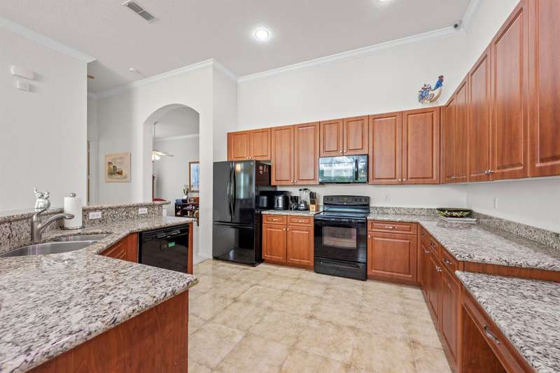 Stunning lake front Millstone Landing beauty with decorative paver driveway, stack stone exterior accents and fresh exterior paint. Step into elegance as your welcomed by the grand entry with volume ceilings, arched doorways and an expansive layout. Serene lake views will draw you into the kitchen featuring granite countertops, complete appliance package, pantry, and breakfast nook. Family room and covered screened porch all enjoy the same relaxing lake views. Lake views follow to the master bedroom featuring expansive walk-in closet, and luxurious ensuite with soaking tub, dual vanities and walk-in shower. 2 additional bedrooms with den or optional 4th bedroom complete the package. Community amenities include tennis, pickleball, basketball, fitness center and outdoor pool. Start living