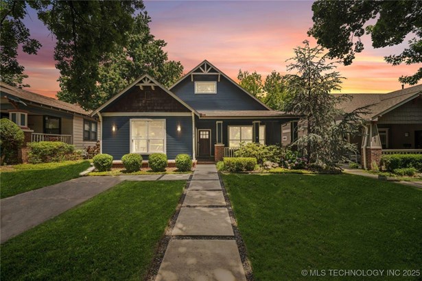 Welcome to a home that's more than a house-it's a lifestyle. Set on just over 2 acres at the Oaks Country Club, this retreat offers peace and privacy while keeping you minutes from Tulsa Hills and Highway 75. Bronze sculptures-an elk, a mama and baby bear, and a boy fishing-dot the property, adding character to this one-of-a-kind setting. The home itself blends stone masonry and lodge-like warmth. The great room, anchored by a wood-burning fireplace and wall of windows, flows into a chef's kitchen with gas cooktop, large island, and eating area. A prep pantry, wet bar, and formal dining room create seamless entertaining space. Both the formal living room and primary suite feature gas log fireplaces, and oversized bedrooms, each with a private ensuite, give everyone space and privacy. Downstairs also includes an office and a utility room that doubles as a prep kitchen. Upstairs, a comfortable hangout with built-in desks provides space to work or relax. Reclaimed pine floors bring warmth throughout both levels. Step outside to find not just one garage but two-an attached two-car plus a detached three-car with finished guest quarters above that could have multiple uses. Perfect as a hangout, guest suite, or rental income (furniture included). Two additional sheds offer storage for gardening tools and outdoor toys. Enjoy mornings on the screened porch or evenings on the deck with a glass of wine as the sculptures glow under night lights. This isn't just a home. It's a private retreat where nature, art, and convenience come together. (Per APPRAISAL: home 3,884 sq ft plus 639 sq ft guest quarters above garage for 4,523 total livable sq ft.)
