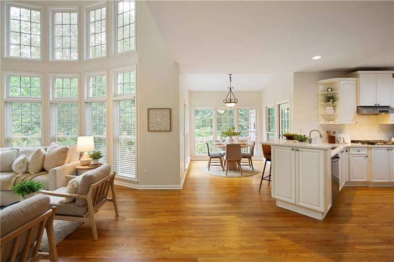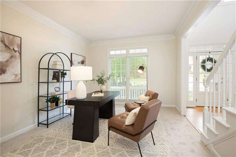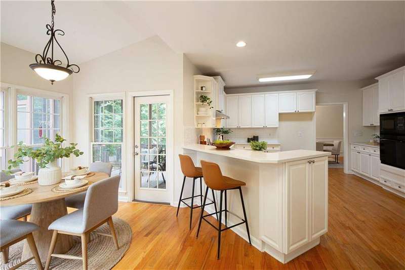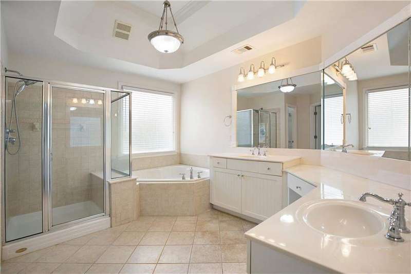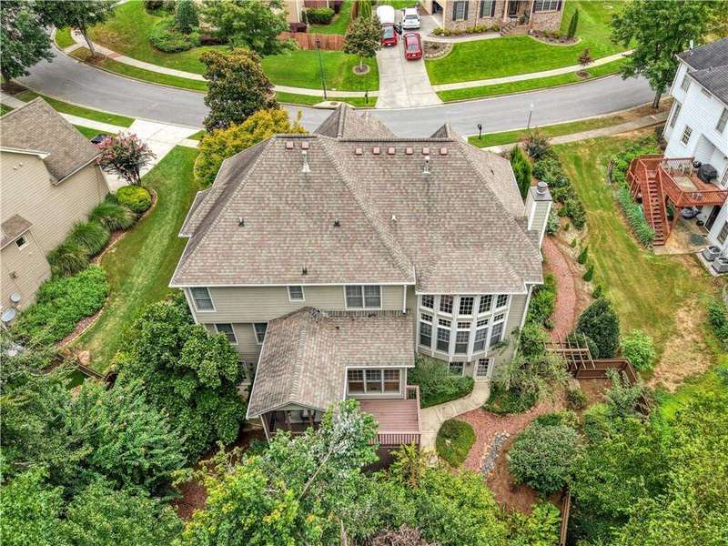 $25k Price Improvement! Perfectly positioned just steps from community amenities, this custom 6BR/5BA Craftsman-style home offers an ideal blend of timeless charm, modern updates, and serene outdoor living. Impeccably maintained by the original owners, the curb appeal is undeniable-thanks to the freshly painted exterior, mature landscaping, and a welcoming covered front porch that invites peaceful mornings and relaxed evenings. Inside, a sun-drenched two-story foyer sets the tone for the light-filled, open floor plan. Fresh interior paint, newly refreshed hardwood floors, and brand-new carpet throughout create a move-in-ready backdrop for everyday living. At the heart of the home, the chef's kitchen shines with white cabinetry, new quartz countertops, a subway tile backsplash, walk-in pantry, and a generous casual dining area overlooking the backyard. Soaring ceilings and a wall of windows define the two-story great room, anchored by a cozy brick fireplace with remote controlled gas logs. The main level also includes a spacious dining room, dual staircases, a versatile sitting room/office, and a desirable guest bedroom with a full bath. Upstairs, the oversized primary suite offers a trey ceiling, private sitting area, and generous walk-in closet. The spa-like bath features dual vanities, a soaking tub, and a separate shower. Three additional secondary bedrooms-all with walk-in closets-include one with an en-suite bath, while the other two share a Jack-and-Jill layout with dual sinks. A convenient upstairs laundry room offers storage shelving and an electric/gas option. The fully finished terrace level offers endless possibilities for relaxation and recreation! With open entertainment space, room for a kitchenette or serving bar, a bedroom/flex space, full bath, and private exterior entrances, this level is perfect for multi-generational living, guests, or hosting. You'll also find two spacious storage closets and a conditioned workshop/hobby space with concrete flooring and exterior access for ease and organization. Outdoor living is just as impressive. Enjoy wooded views from the screened porch or deck and gather with friends on the lower patio-ideal for a future hot tub. The fenced backyard is beautifully landscaped with native plants, perennials, and tranquil paths offering both privacy and play space. With a 4-zone irrigation system, it's a low maintenance oasis! 4106 Creekview Ridge Drive offers the best of modern convenience, outdoor living, and an active community lifestyle-all within minutes of top-rated schools, shopping, and dining. Don't miss it!