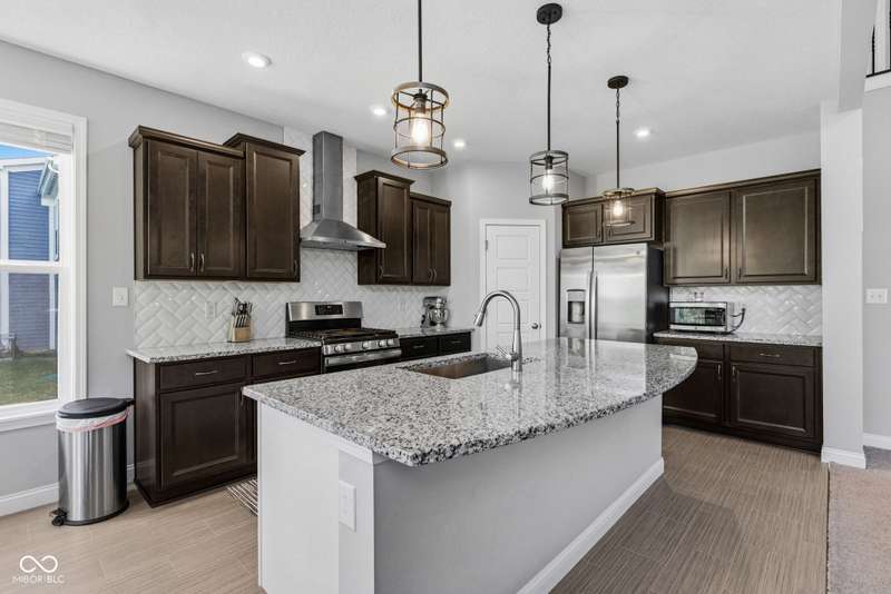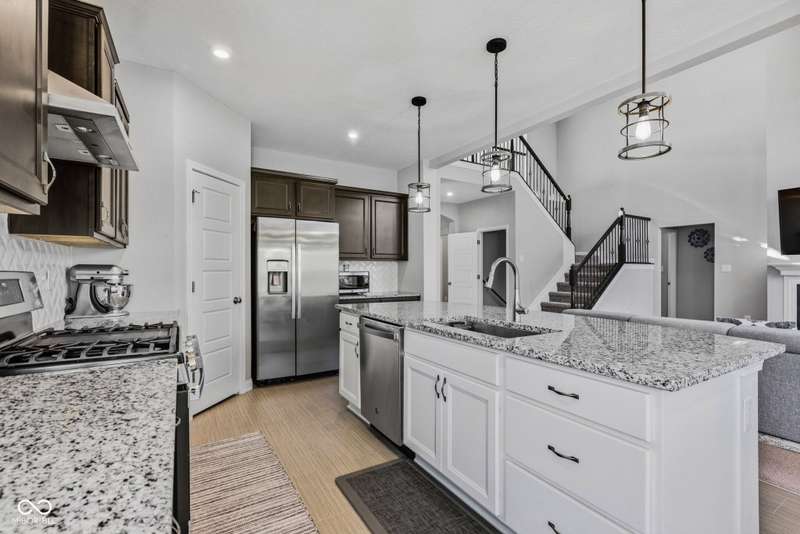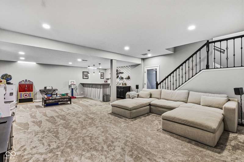 Welcome to the stunning 5-bedroom, 4.5-bath home in the desirable Villages at Brookside community. The main floor features a two-story great room, open dining area, and gourmet kitchen with modern finishes. Enjoy a spacious primary suite with a spa-like bath and walk-in closet, plus a second bedroom with its own full bath-perfect for guests or multigenerational living. Upstairs offers two bedrooms, a full bath, and an open loft for extra living space. The finished basement includes a wet bar, large recreational room, workout/flex room, bedroom, and full bath-ideal for entertaining. Relax on the large patio with a gas fire pit. Take advantage of ample storage throughout the house and an oversized two-car garage. Close to the developing McCordsville downtown, Geist Reservoir, and Fishers shopping and dining, with community pool and playground access. Don't miss your chance to own this exceptional home in one of McCordsville's most desirable neighborhoods.