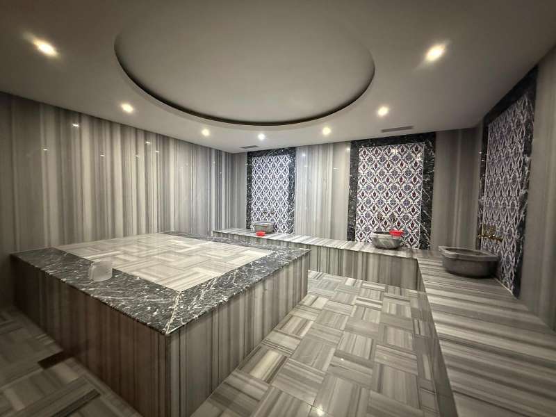 The residential complex provides a rich amount of amenities. All residents can benefit from the communal swimming pool, sauna, fitness center, Turkish bath, playground, water park, outdoor parking, barbeque area, tennis and basketball court, cinema, cafe, and restaurant.