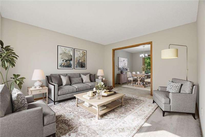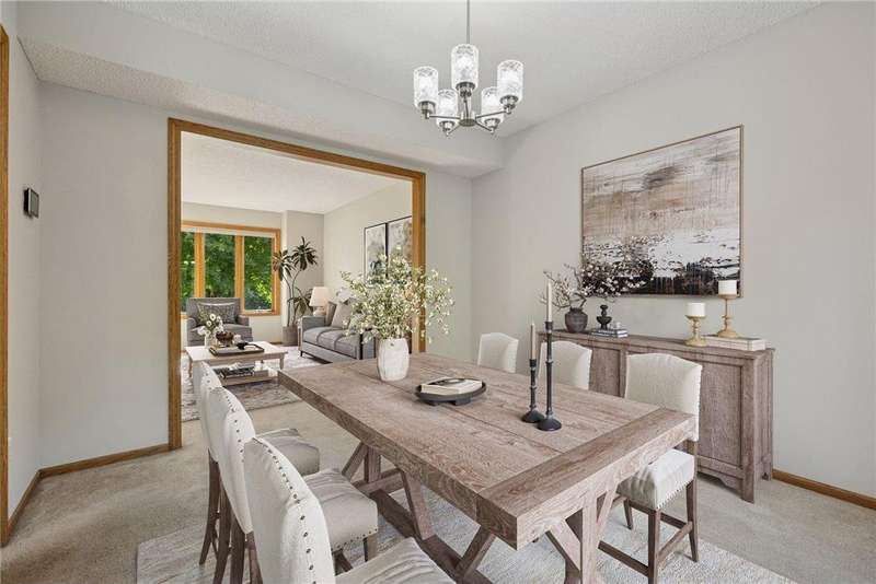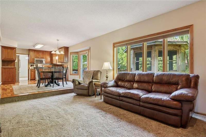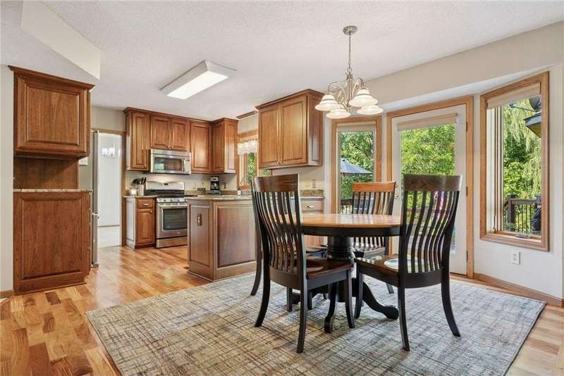 A gem is waiting for you in Birch Park and this Eagan two-story shines from the INSIDE-OUT. This gorgeous setting offers woodland views, lovely landscaping and privacy beyond compare. Enjoy the best of fall from its expansive deck and screened-in Gazebo. Open the front door to reveal a traditional layout with refreshed paint and many recent upgrades. The kitchen is the heart of the home and delivers stainless steel appliances, granite countertops, Cherry cabinetry and real hardwood floors. Entertainment is made easier with both formal and informal dining space. The sunken family room shows off a beautiful brick fireplace with a gas insert and built-ins on either side. The front living room offers versatile use with a half bathroom down the hall. Head to the upper level to find four bedrooms, two full bathrooms and BRAND-NEW carpet installed throughout. The primary suite bath features a recent remodel with a freestanding tub, tiled shower stall and Quartz countertops. The lower level is unfinished with walkout access and welcomes your own design for instant equity. There is great storage, a woodburning fireplace, rough-in plumbing, and laundry service already in place. The concrete driveway was just redone a year ago and the roof is 11 years old with 30-year shingles. Don’t miss this incredible opportunity with the Eagan Civic Arena, Cascade Bay Waterpark, Dakota County Library and serene parks and trails all within walking distance.