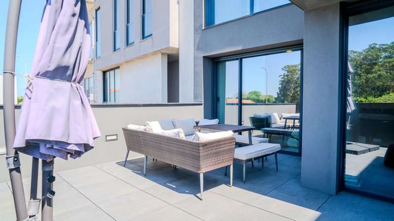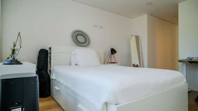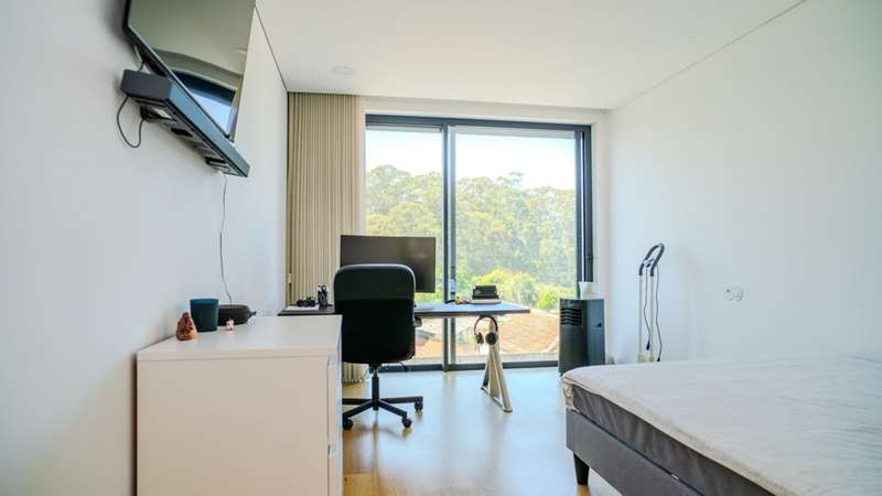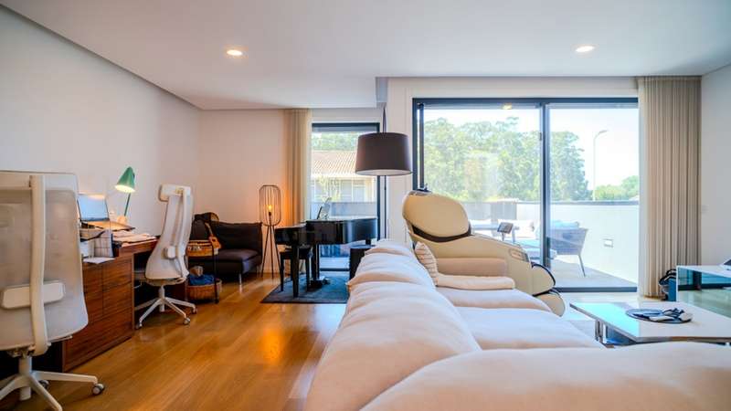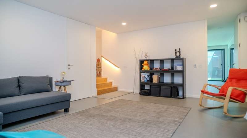 Located in one of Porto's most prestigious areas , just a few steps from CLIP and the City Park, this townhouse stands out for its modern design, extraordinary brightness and top finishes . Spread over three well-defined floors, it offers family living with great comfort and sophistication. The social area is located on the second floor, with a large living room of 53 m² bathed in natural light, extended by a west terrace overlooking the greenery of the Park. The kitchen, fully equipped with Miele appliances and Korian surfaces, is complemented by a private outdoor area ideal for al fresco dining. The second floor houses three elegant suites, two of them with dressing rooms, and the master suite has a bathroom with natural light. All the bedrooms have built-in closets and lacquered finishes, ensuring a discreet and functional organization. On the first floor, versatility is the watchword: closed garage, laundry room, and a suite that has been converted into a gym with access to an outdoor space, as well as a multipurpose room and full bathroom - perfect for remote work, leisure or receiving guests in comfort. The central skylight provides scenic lighting throughout the house, heightening the sense of space and well-being. The underfloor heating system, heat pump, solar panels and east-west orientation enhance energy performance and quality of life. The quiet residential location, with quick access to beaches, highways and international schools makes this villa a unique option for those looking for centrality with serenity. CHARACTERISTICS: Plot Area: 204 m2 | 2 199 sq ft Deployment Area: 128 m2 | 1 375 sq ft Building Area: 346 m2 | 3 726 sq ft Bedrooms: 4 Bathrooms: 5 Garage: 2 Energy efficiency: A+