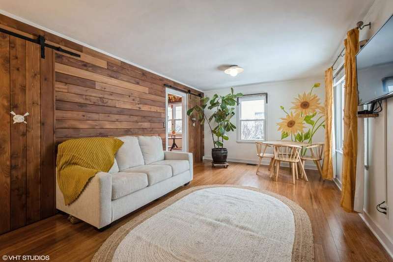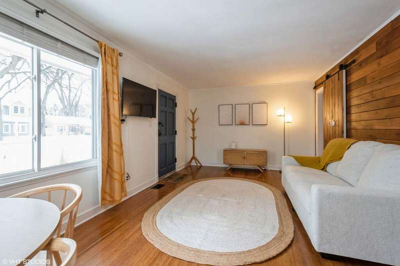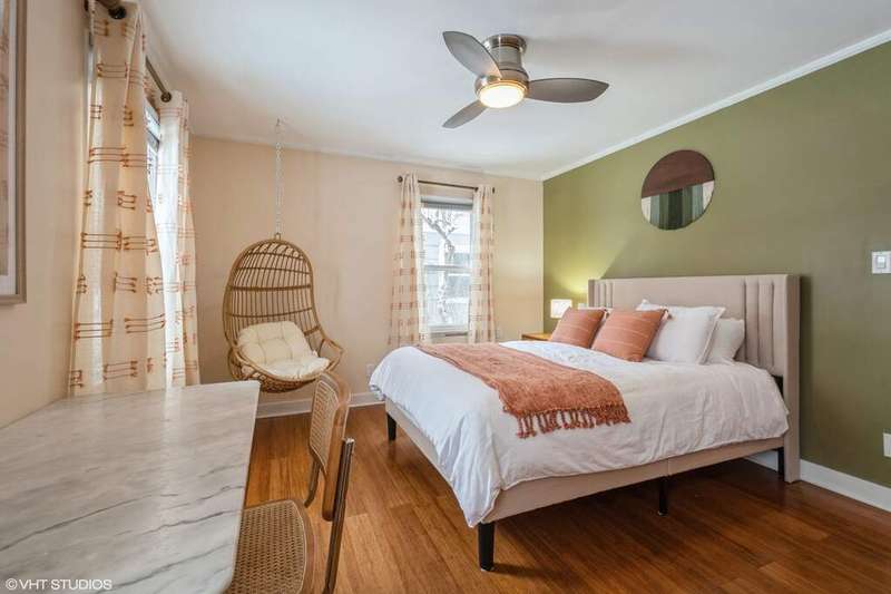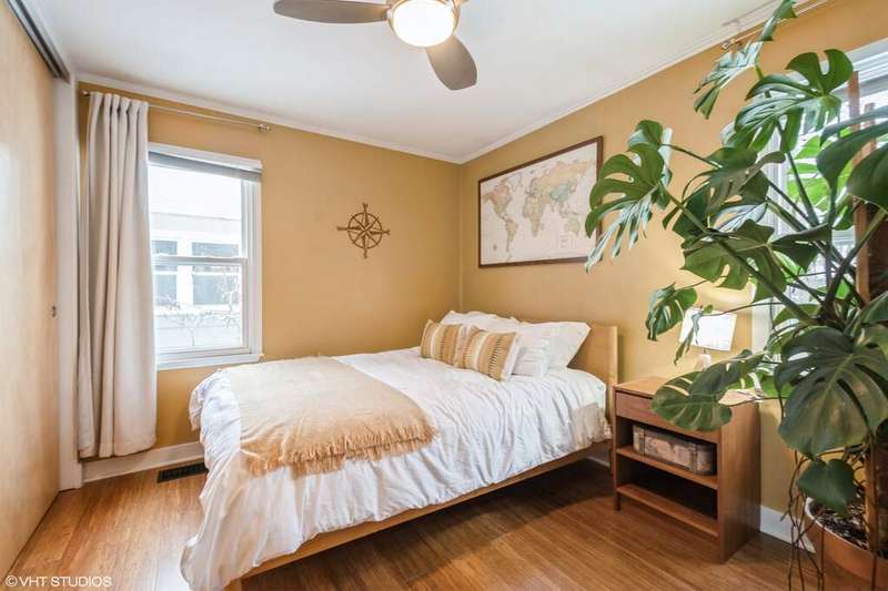 Want to live in a beautiful house on a huge piece of land? This 2 bedroom 1 bath on a serene and tree-lined street sits on almost a quarter acre of land with a beautiful wooded backyard. The house has all the modern conveniences you are looking for- LG washer/dryer, dishwasher, central heat/ac, and updated bathroom. Both bedrooms have large closets with wardrobe organizers, overhead fans, and excellent natural light. Enjoy your coffee in the vintage kitchen at the breakfast nook or on the covered back porch. Brand new roof on the one car garage plus attached storage shed. This meticulously cared for property is close to Robert Crown, James Park, Aldi, Home Depot and so much more. Agent owned.