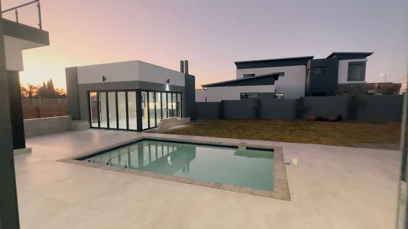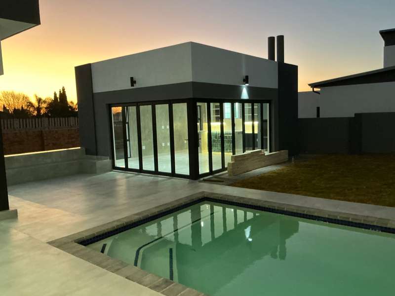 A MODERN DESIGNED FAMILY ORIENTED HOUSE ON SALE IN MIDSTREAM HIEGHTS I Modern kitchen I Modern houses I Higher-end finishes I Buy directly from the developer I Save on transfer duties I Unique design I Satisfaction I Space to enjoy I Modern design I Family oriented house I Property Features: Ground floor -Kitchen, laundry, and pantry -A beautiful foyer and huge double volume -Dining area -Lounge area -Living area -Study or Staff Quarter -Open patio - Outside braai and entertainment area -Swimming Pool and boma -3Garages First floor -3 Ensuites bedrooms with balconies. - Ensuites main bedroom complemented by huge dressing area with massive balconies -PJ lounge -Study area For more information and appointment contact us today