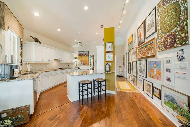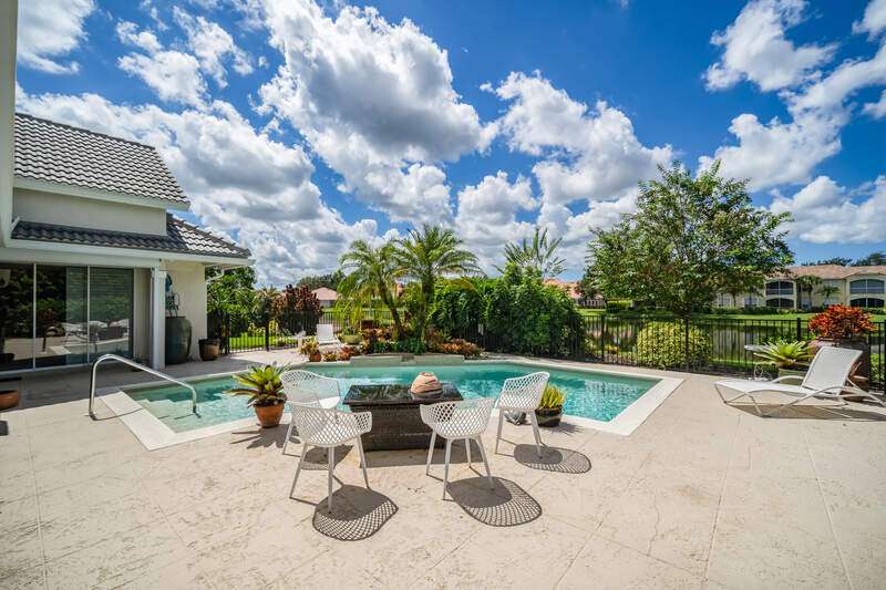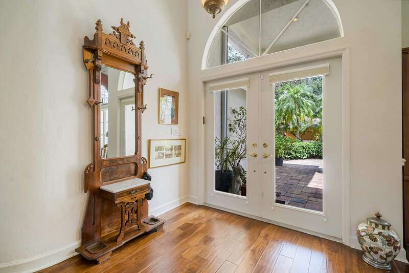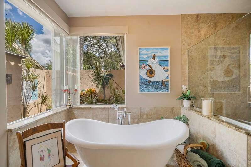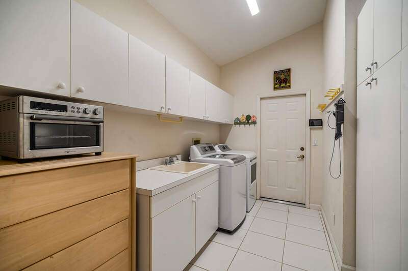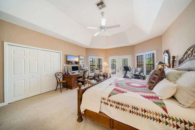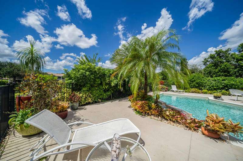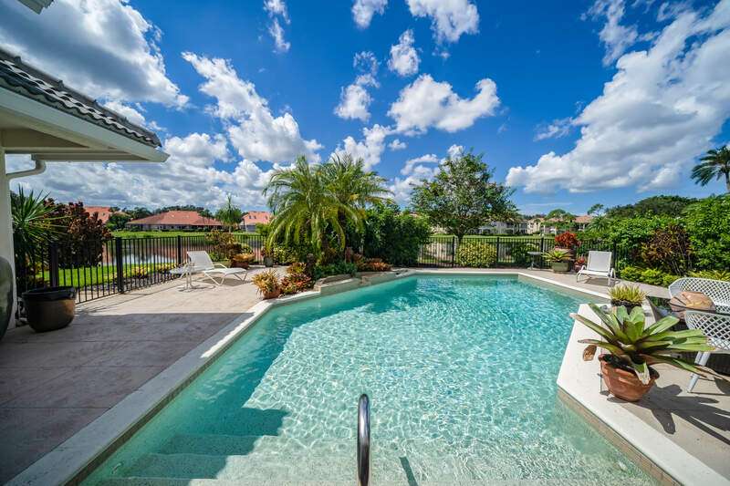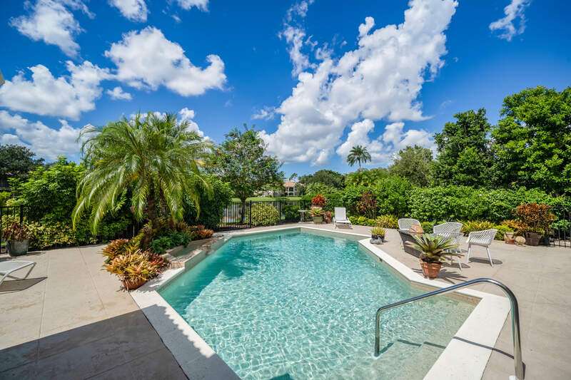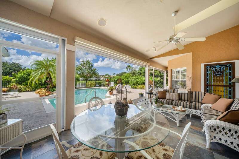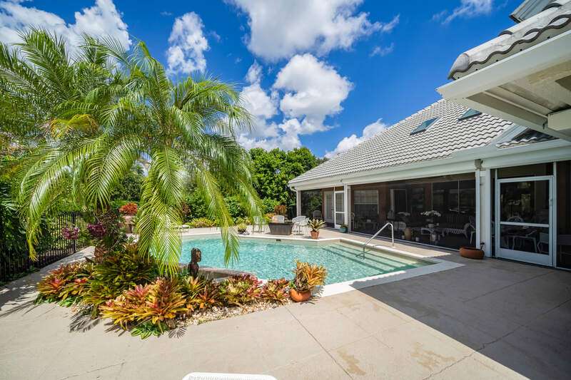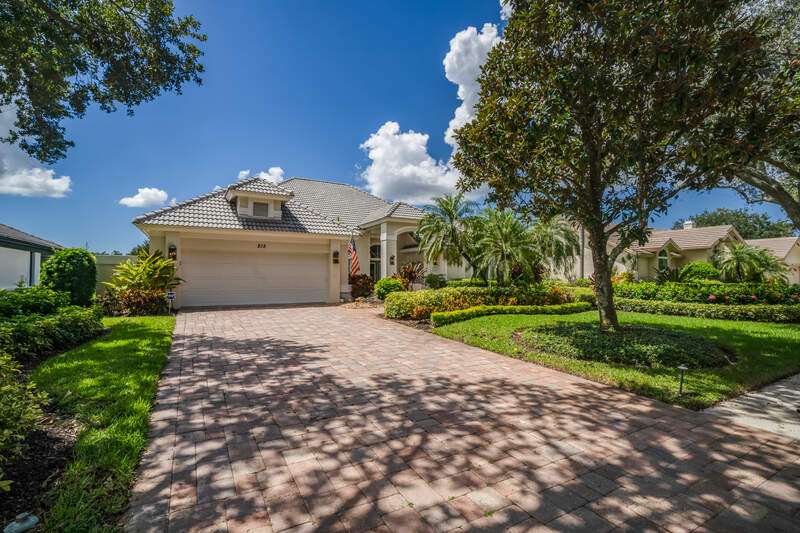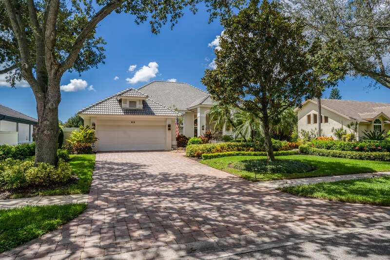 This beautifully maintained home in the Vineyards offers timeless style and easy Florida living on a southwest-facing lakefront lot with lush landscaping, great curb appeal, and a brand-new roof completed in 2023. A double-door entry with glass accents and a palladian window opens to soaring 12' ceilings, hardwood floors through the main living areas include: living room, dining room, family room, breakfast nook and hallways. Sunny and brightly lit home sparkles with natural light. The formal dining room shows off decorative millwork, a dramatic picture window with custom draperies, and tall ceilings, while the living room features hardwood floors, sliders that fully pocket to the lanai, and a welcoming flow. The kitchen blend's function and charm with white cabinetry, cork flooring, granite counters, stone backsplash, stainless appliances, and an oversized sink overlooking a pass-through window to the lanai. A bay-window breakfast nook with pendant lighting opens to the bright family room with plantation shutters, sliders to the lanai, and a wet bar perfect for entertaining. The owner's suite is a true retreat with its own vestibule, three closets, French door access to the pool, and a spa-inspired bath with oversized vanity, separate makeup space, floating soaking tub, walk-in seamless shower, and enclosed water closet. Two guest suites offer comfort and privacy, and a separate den with vaulted ceilings, built-ins, and a large picture window that works as a home office or optional fourth bedroom. Outdoor living is easy with an expansive covered and screened lanai featuring paver decking, recessed lighting, a ceiling fan, and electric shutters, all overlooking sparkling lake views. Additional highlights include an oversized paver driveway and walkways, a 2-car garage with attic access, and a laundry room with utility sink. With southwest exposure filling the home with light, you'll love the relaxed vibe, and while Vineyards doesn't require club membership, options are available to enjoy two 18-hole golf courses, a racquet center with 12 Har-Tru tennis courts (six lit for night play) and eight gel-cushioned pickleball courts with LED lighting, multiple dining venues, plus a world-class wellness center offering a gym, spa, barber shop, salt cave, and more.