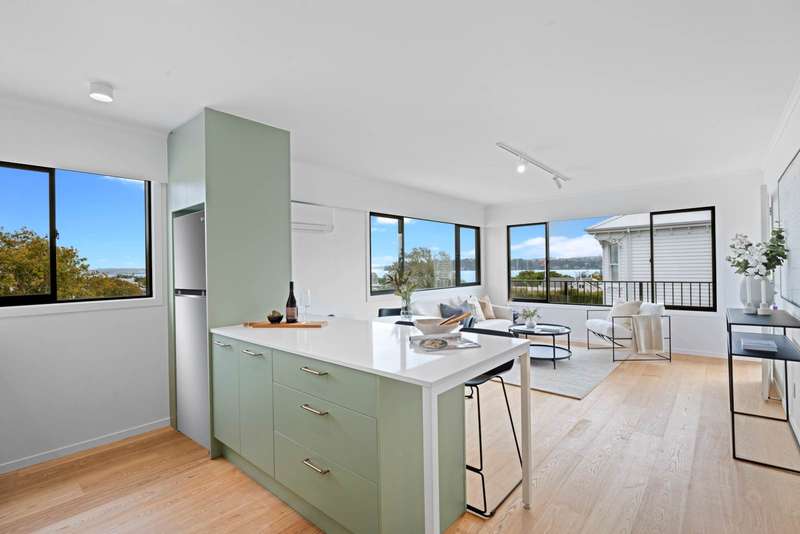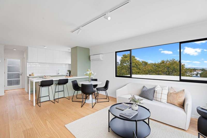 Elevated living in Herne Bay: A refined 1960’s revival! Discover an exclusive opportunity to secure your place in one of Auckland’s most sought-after suburbs. This recently refurbished apartment block, a true masterpiece of mid-century design and contemporary luxury, offers a serene city retreat with views from almost every apartment. With only four residences remaining, this is your final chance to own an exclusive address in the prestigious area of Herne Bay. Each of the two-bedroom one-bathroom apartments has been meticulously redesigned to create a space of timeless elegance and comfort with generous storage. The interiors are defined by American solid oak flooring and a heat pump, creating a warm and sophisticated feel, while the fully tiled underfloor heated bathrooms and separate laundry add a layer of practical luxury. The gourmet kitchen is a chef’s delight, equipped with modern induction cooking. Step out onto your own private balcony to enjoy your morning coffee or an evening aperitif while taking in the serene city vistas. The location is simply unparalleled. Just minutes away, you can enjoy the sun and sea at Herne Bay Beach, relax in the tranquillity of Sentinel Reserve or take a refreshing dip at the Point Erin Pools. The vibrant Jervois Road is also a stone’s throw away, offering an array of cafes, restaurants and bars. For ultimate convenience, you’ll have easy access to public transport and motorways, making the city commute a breeze. This is more than just an apartment; it’s a lifestyle. Inviting expressions of interest from $1,200,000.00