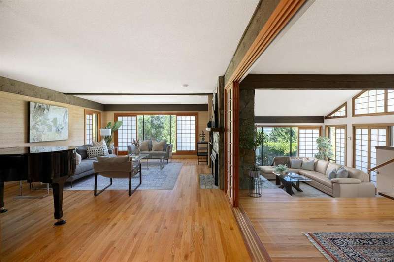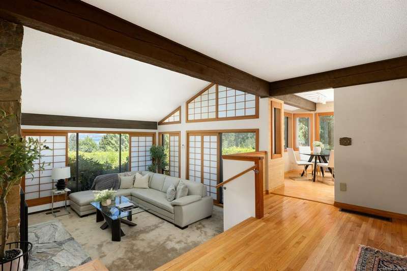 Experience coastal serenity from this beautifully maintained home, ideally situated on a private 0.5-acre property with stunning ocean views. Offering 2 bedrooms, a dedicated office, and a spacious sunken living room, the home blends comfort and style with a layout designed for both relaxation and entertaining. Expansive windows frame the ever-changing seascape, filling the interior with natural light. Outdoors, enjoy peaceful gardens and multiple seating areas that take full advantage of the view. Located in a sought-after neighbourhood, this property offers a rare combination of privacy, space, and close proximity to local amenities.