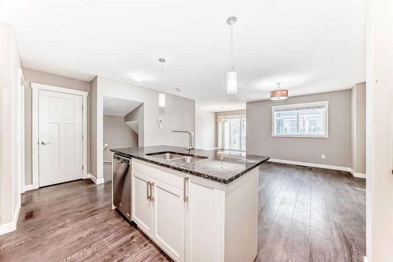 Beautifully maintained and recently upgraded, this townhouse offers everything you’re looking for. Certified BUILT GREEN, this Ivy model is fully finished and features 2 bedrooms, 2.5 baths, a single attached heated garage, plus a full driveway for a second vehicle. Enjoy the bright open-concept layout, complete with granite countertops and undermount sinks in both the kitchen and bathrooms, stainless steel appliances, splatter-coated ceilings, rounded corners, 2" faux wood blinds, wide-plank laminate flooring, and stylish contemporary finishes throughout. The exterior is maintenance-free with durable Hardie Board siding and stone accents. Additional highlights include a spacious balcony, nearby greenspace and parks, and an onsite child care facility. Conveniently located close to transit, shopping, schools, Stoney Trail, and more!