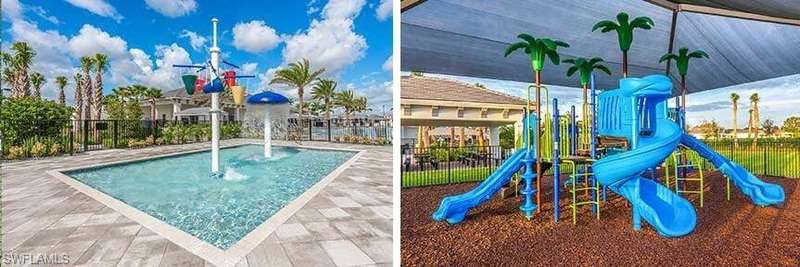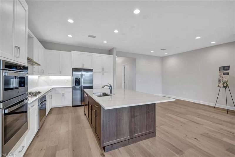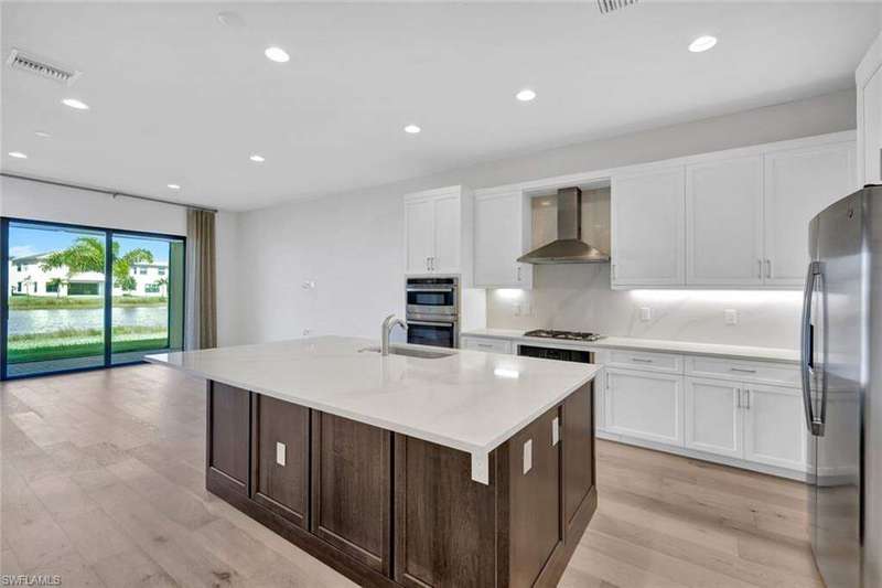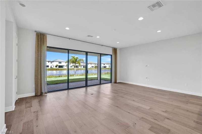 New construction available for Immediate Occupancy! This "Biscayne" home with Lake Views offers Impact Resistant Windows throughout and has 3 Bedrooms plus Den, Loft and 4 Baths, and a 2-Car Garage, an open kitchen with stainless steel GE Appliances and Quartz Countertops. The master bedroom offers a coffered ceiling and spacious closets. Other features include: Glass Entry Door, Wood Flooring in Main areas, upgraded window coverings, extended width of driveway, homesite can accommodate a future pool and more! RiverCreek is Estero's hottest new gated community and features numerous amenities for everyone including a 12,000 square foot Clubhouse with Resort-style pool, event room, fitness center, indoor sports court, tennis, pickleball, basketball and more!
